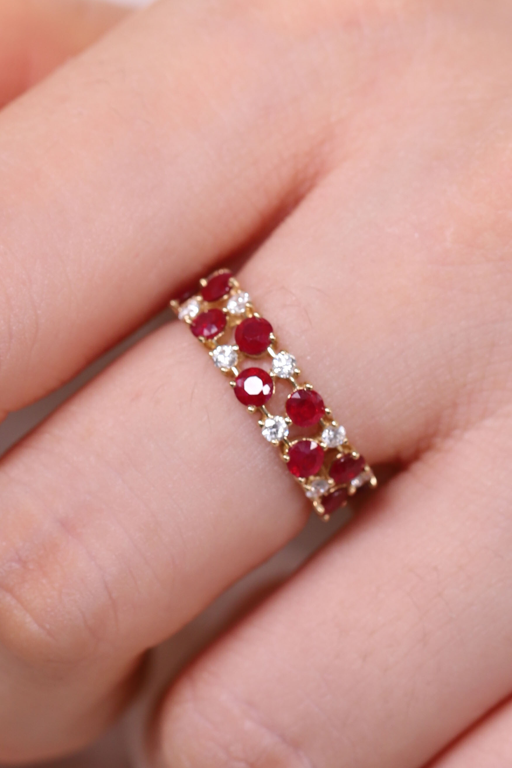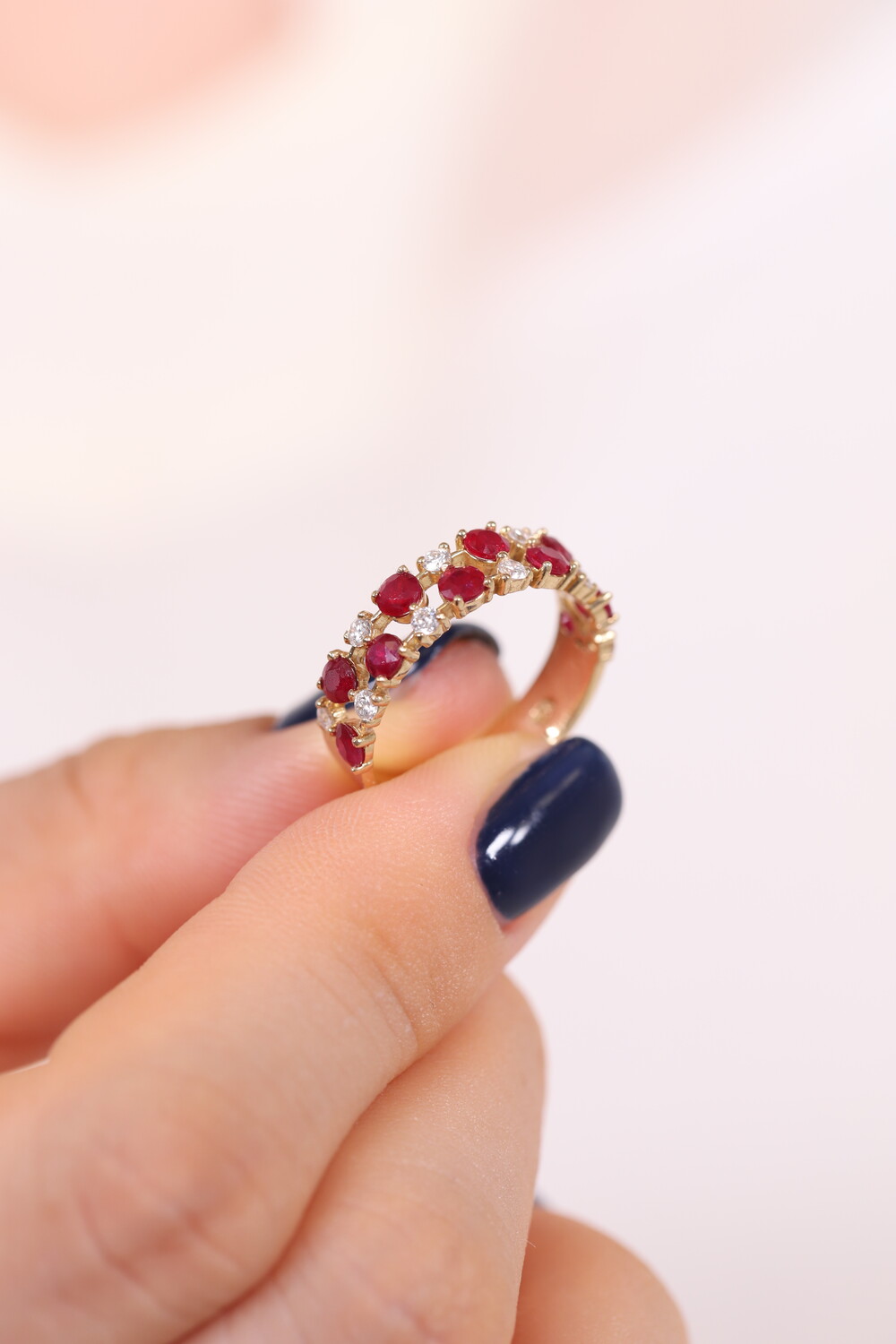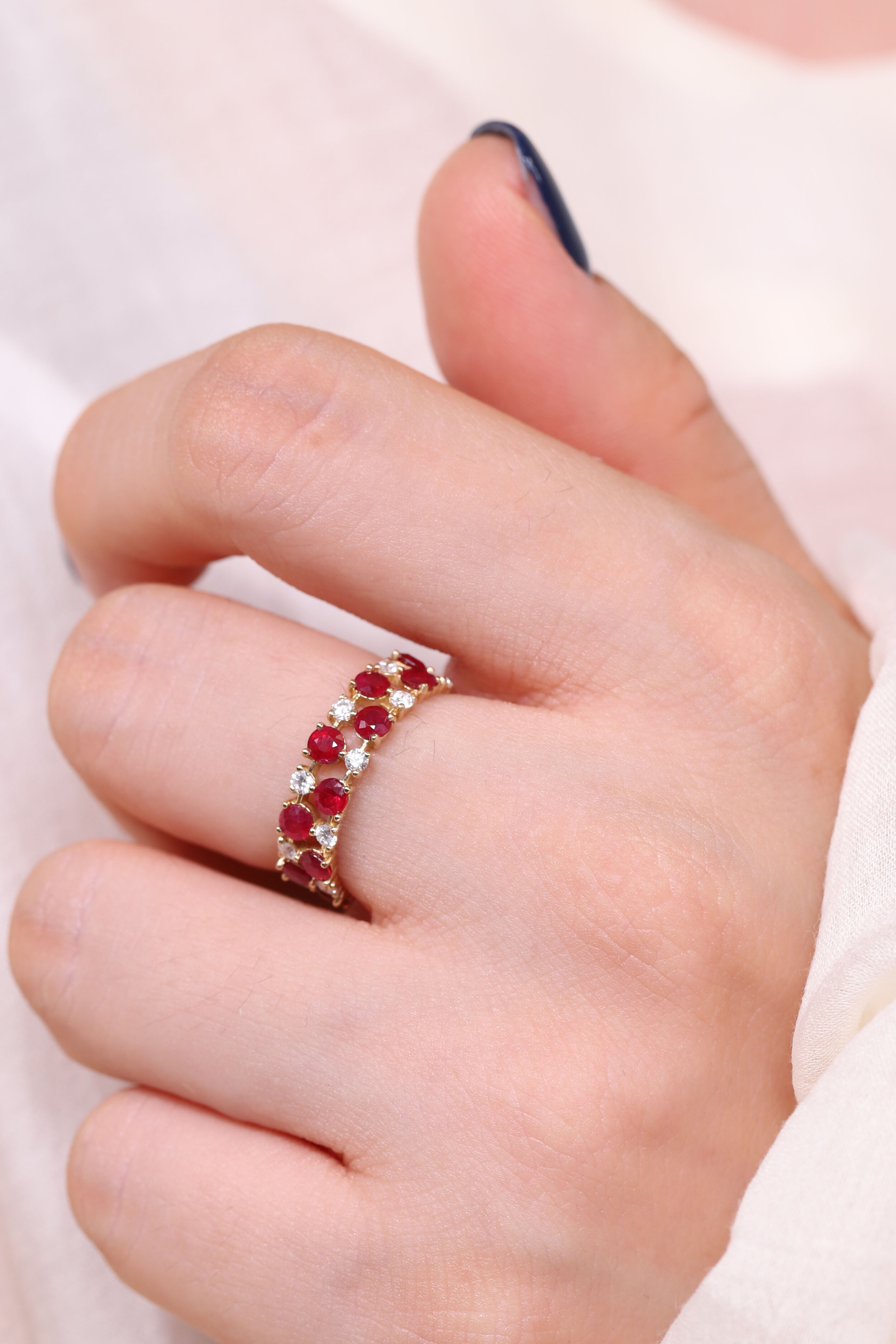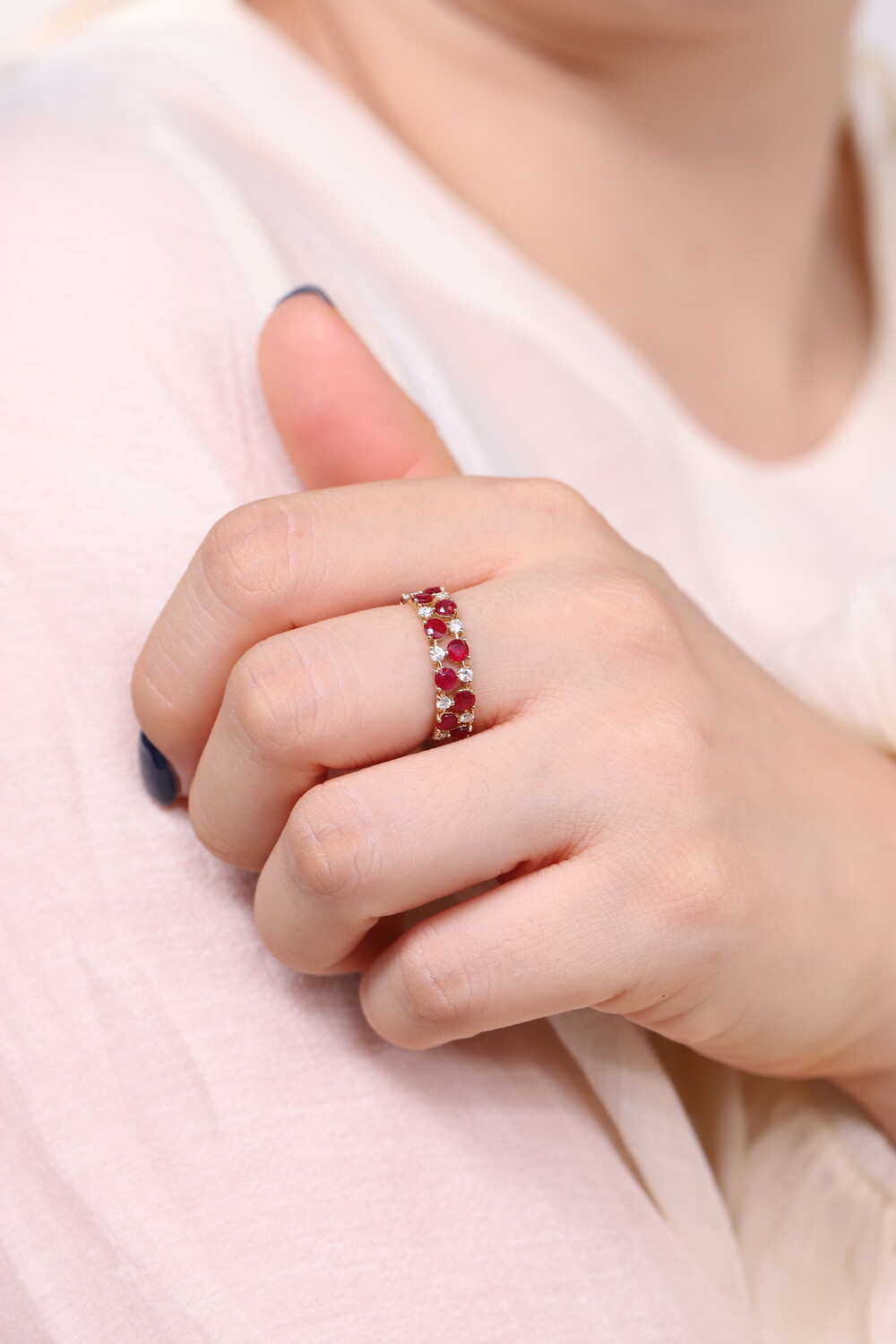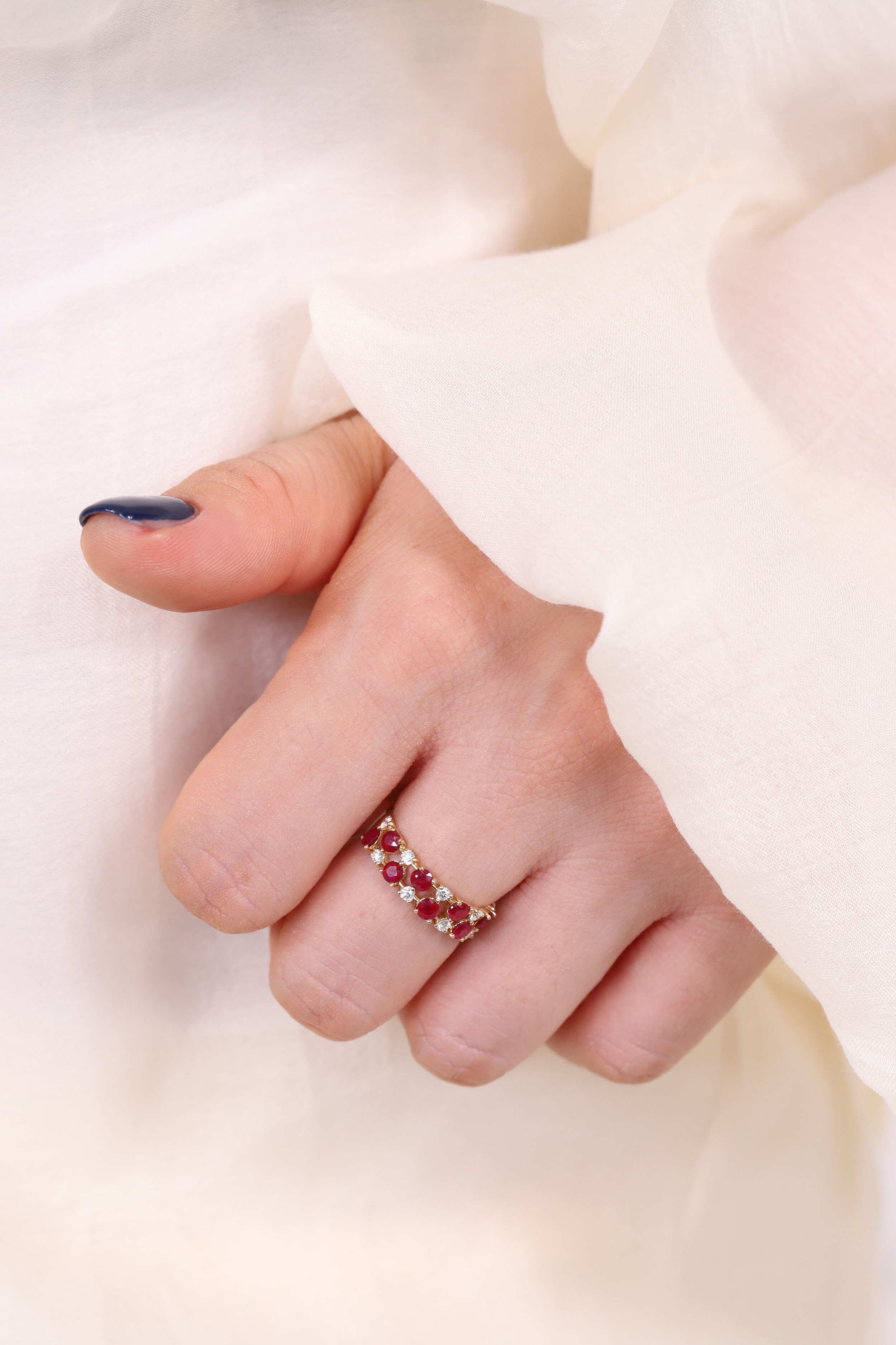 아름다운 붉은 루비와 완벽한 페어링을 이루는 천연 다이아몬드를 살펴보세요.