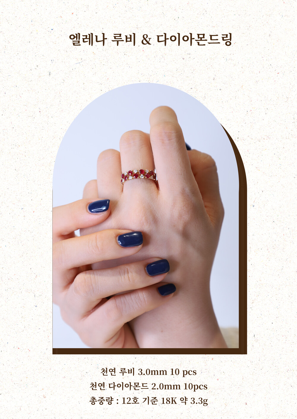 기품이 느껴지는 엘레나 루비 반지를 아름다운 손에 얹어보세요.