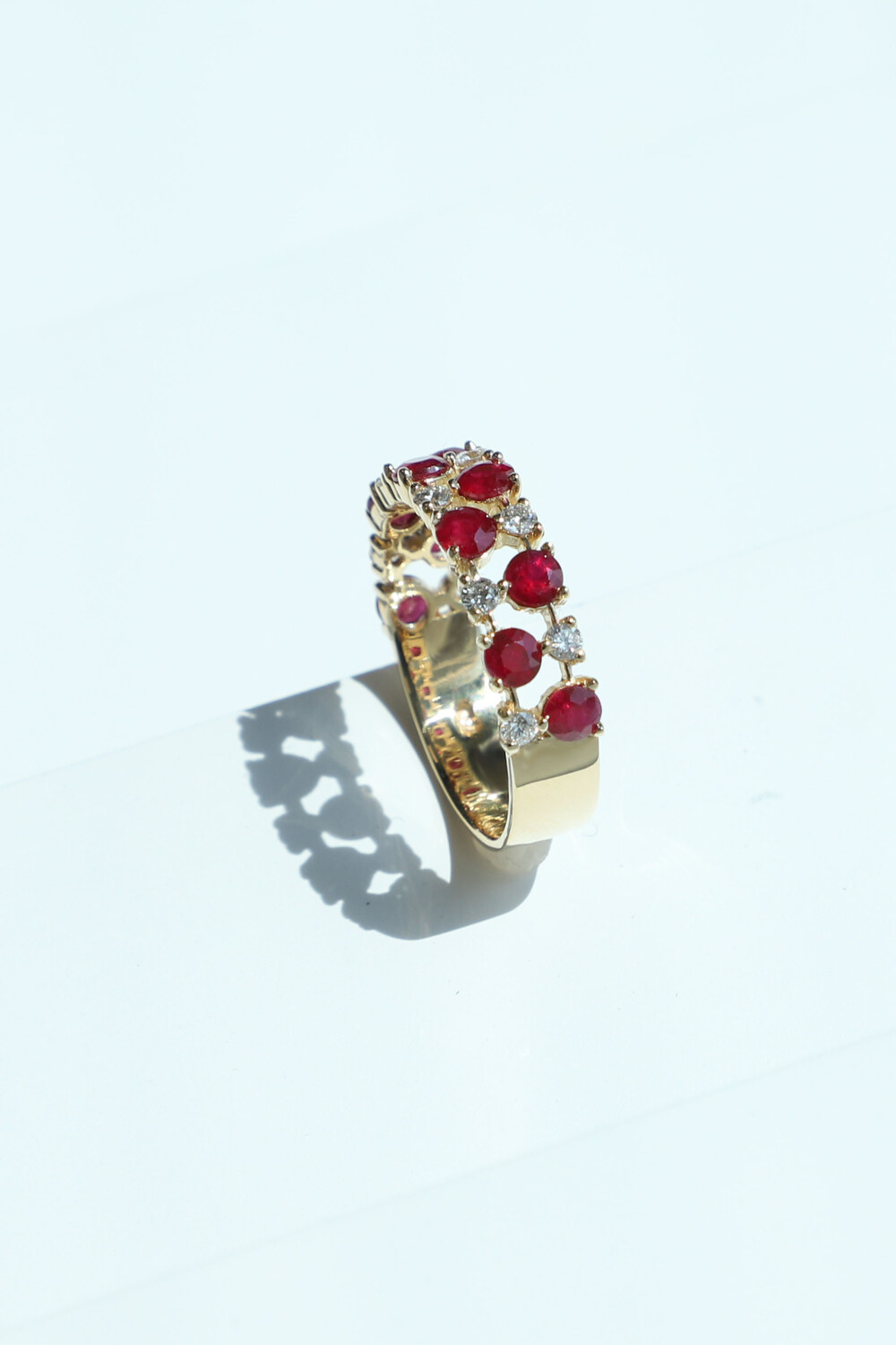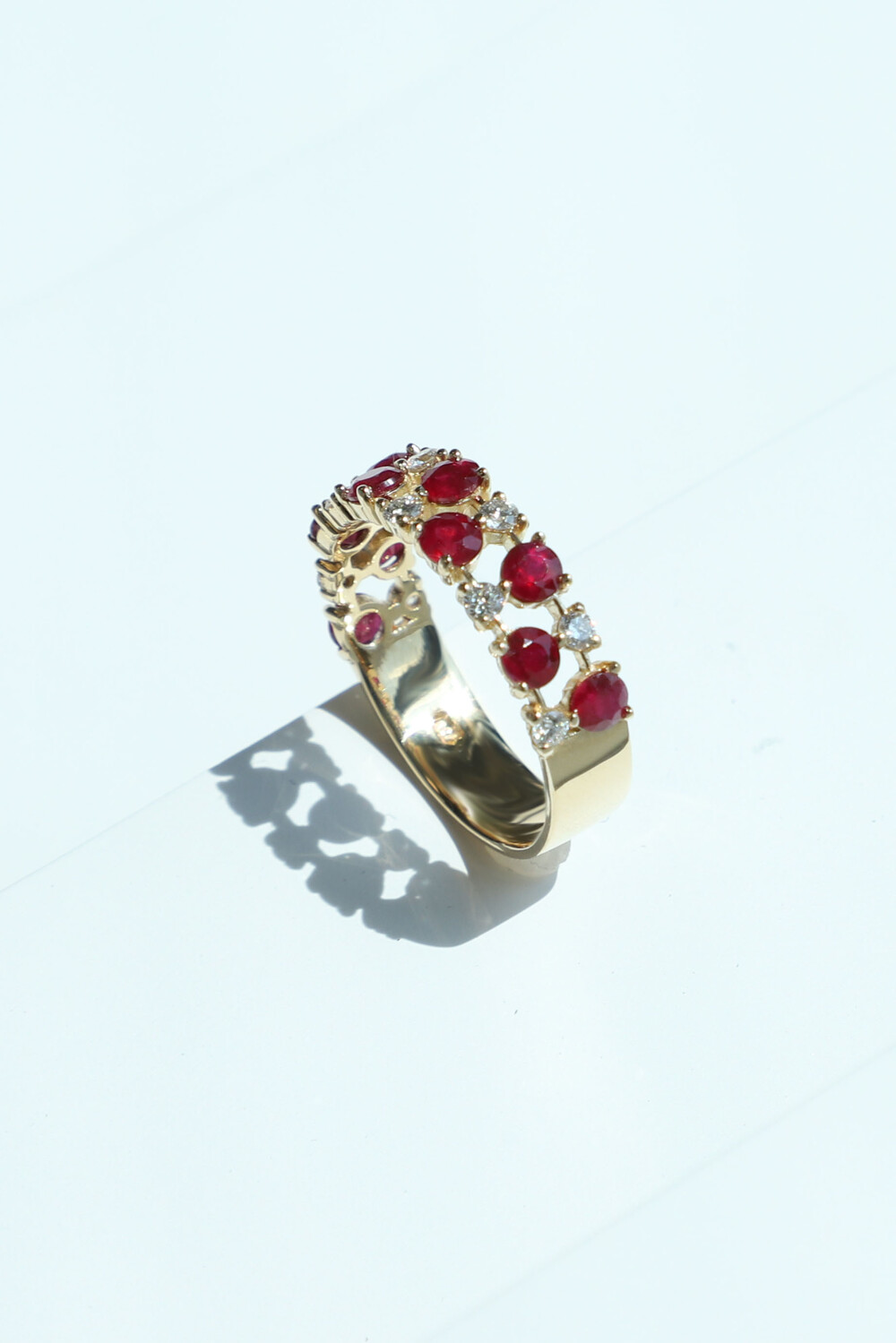 루비는 다이아몬드와 조화를 이룰 때 강렬한 색채의 대비와