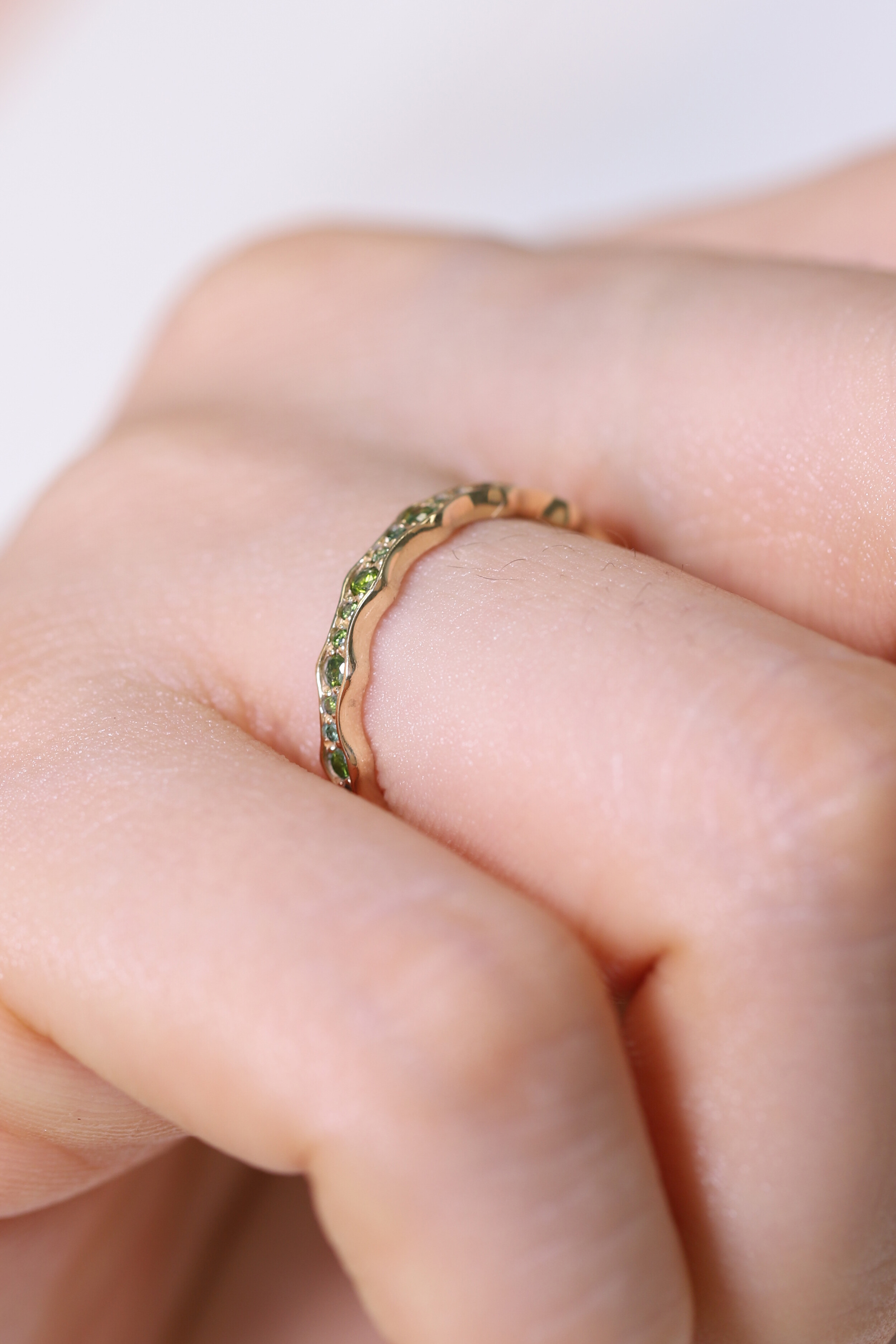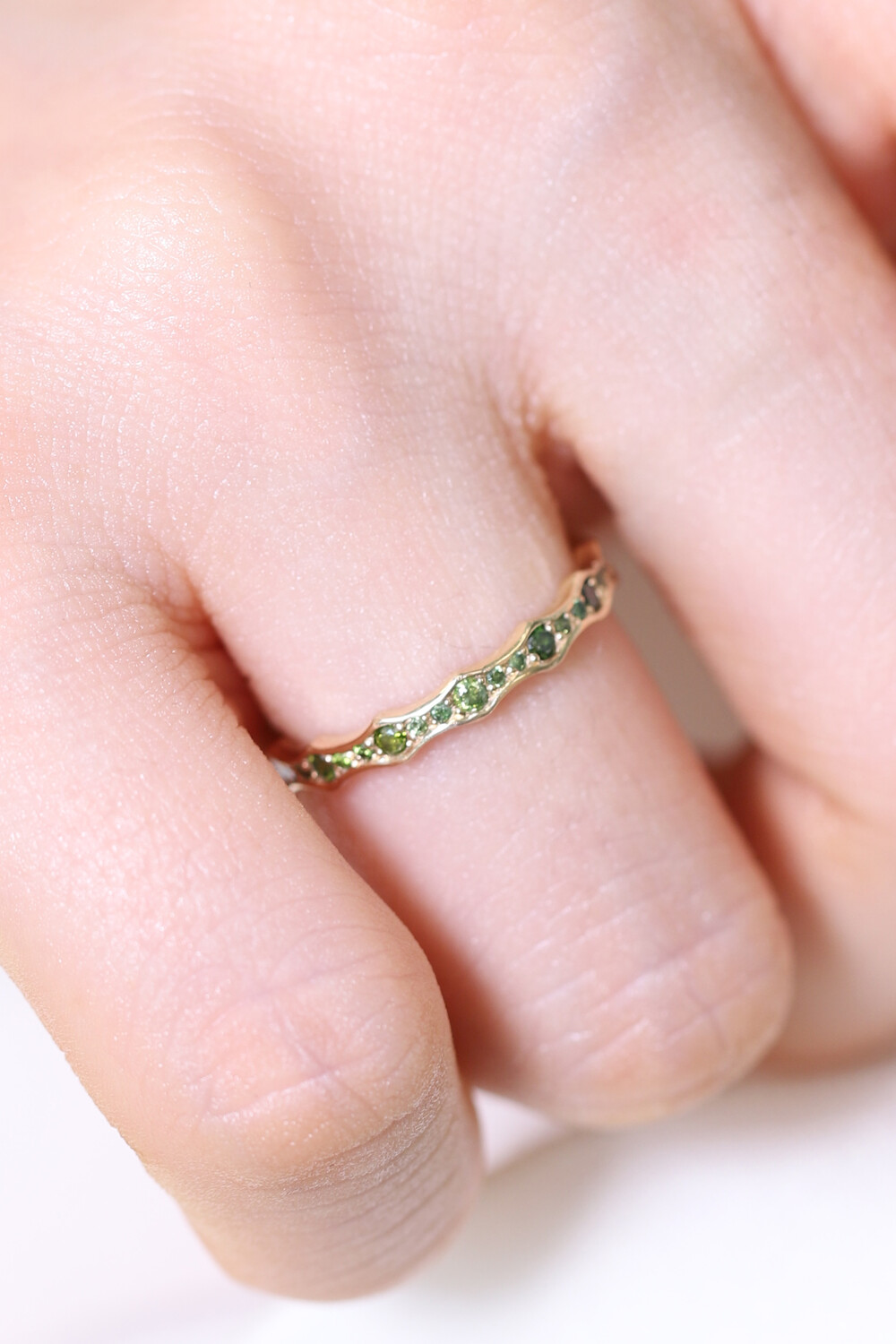 [천연 보석] 그린 다이아몬드 웨이브 링