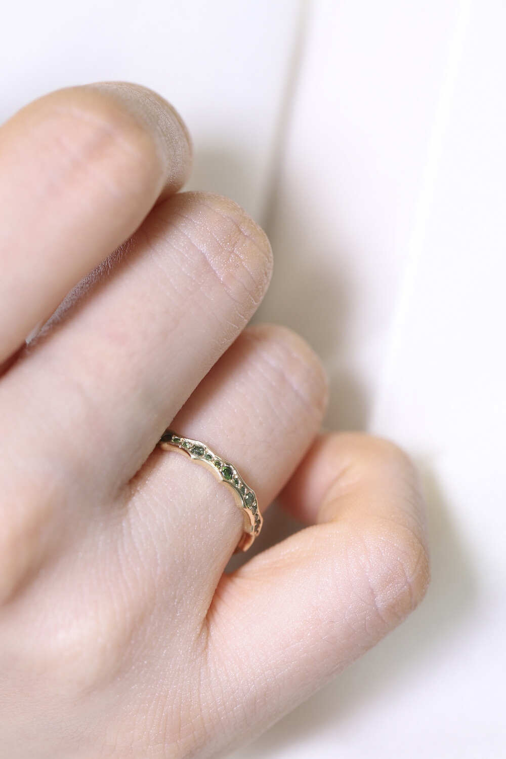 Natural Green Diamond Wave Ring