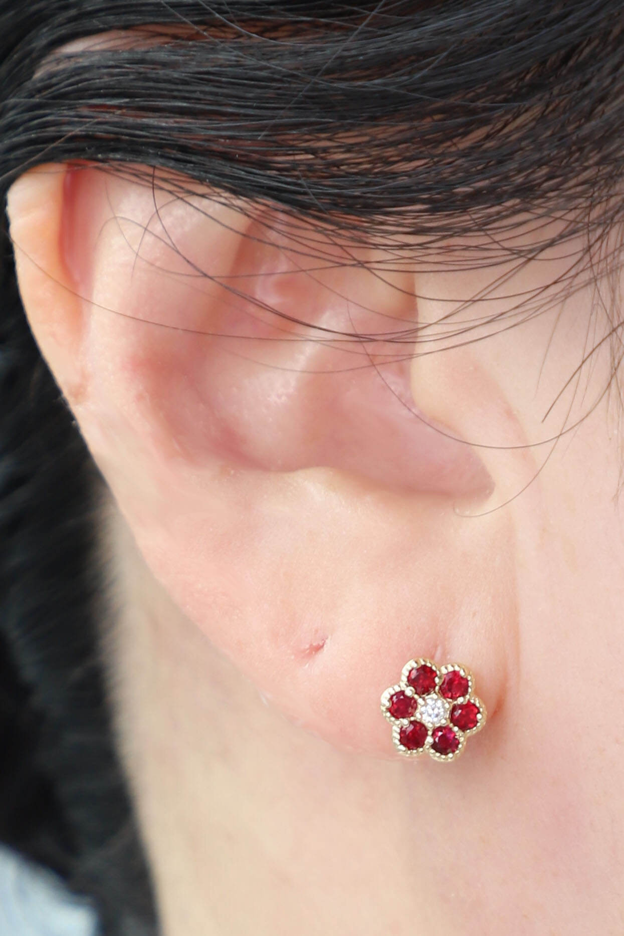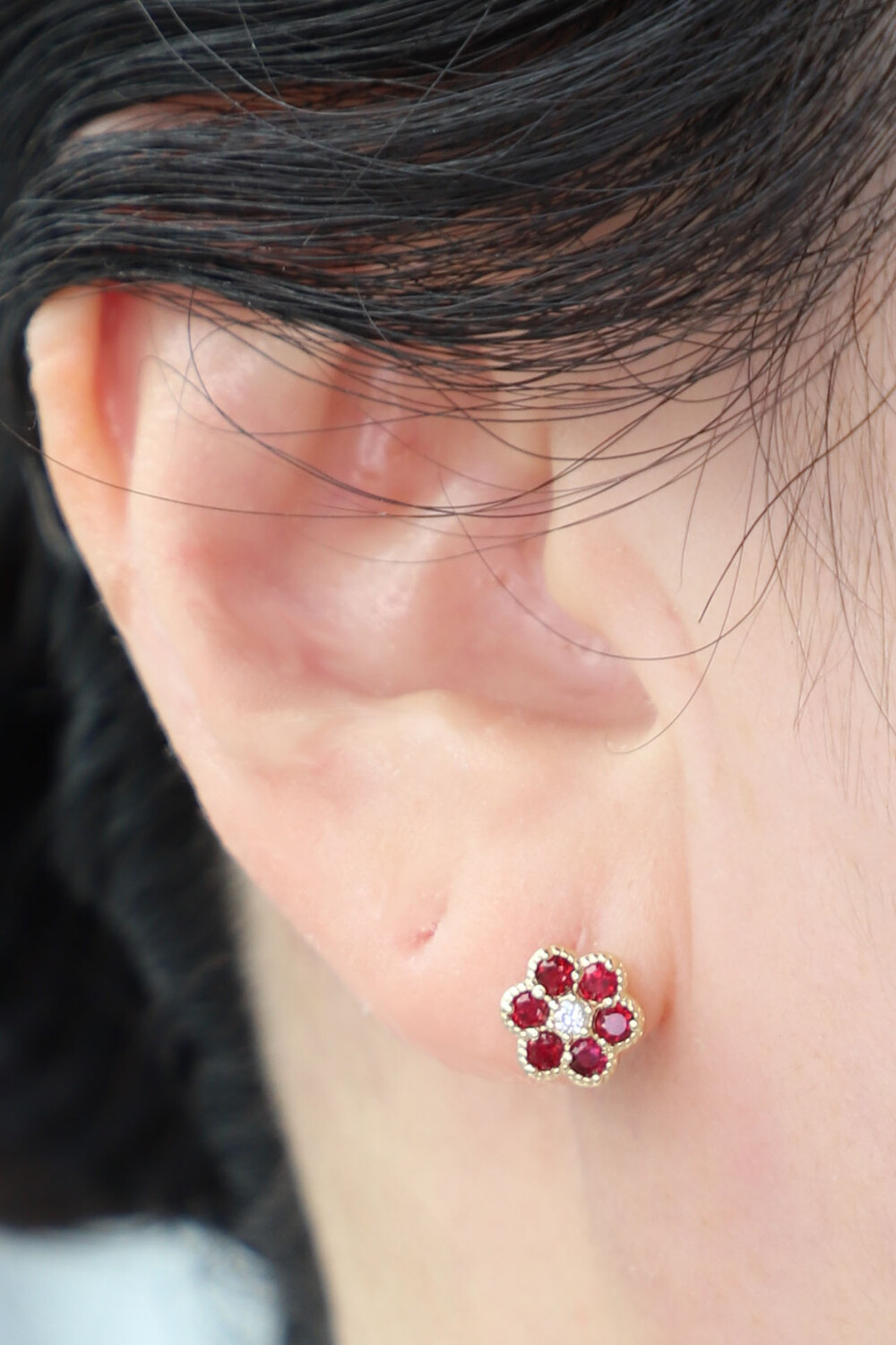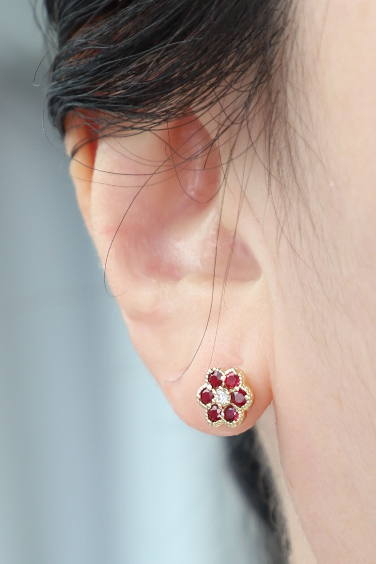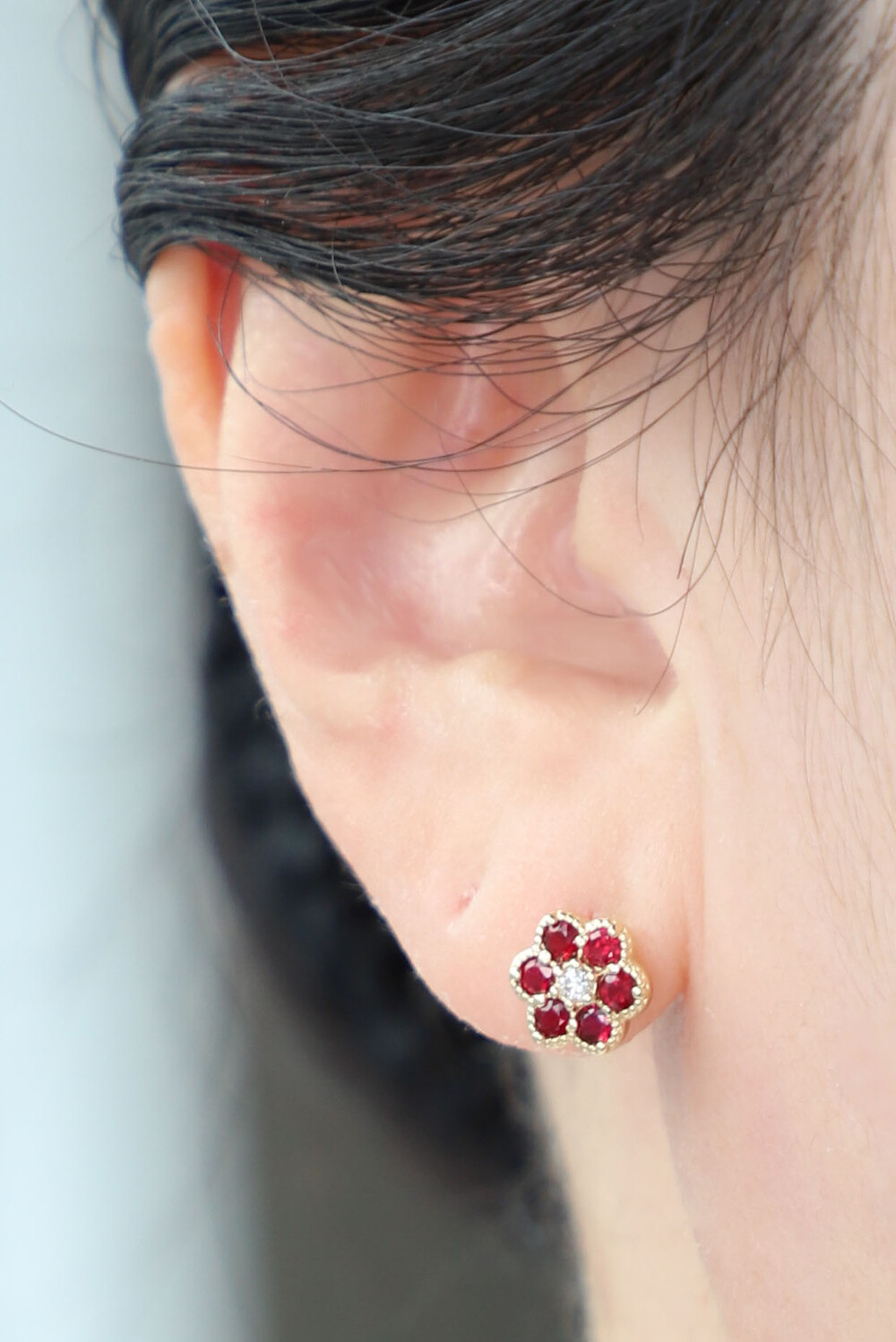 [천연 보석] 블루밍 루비 다이아몬드 이어링