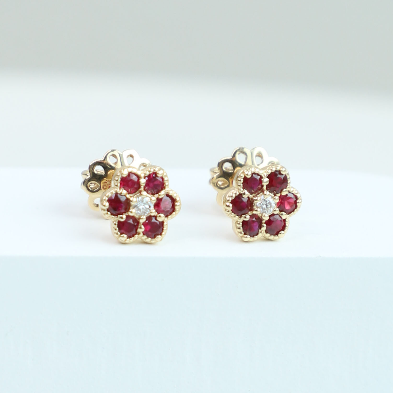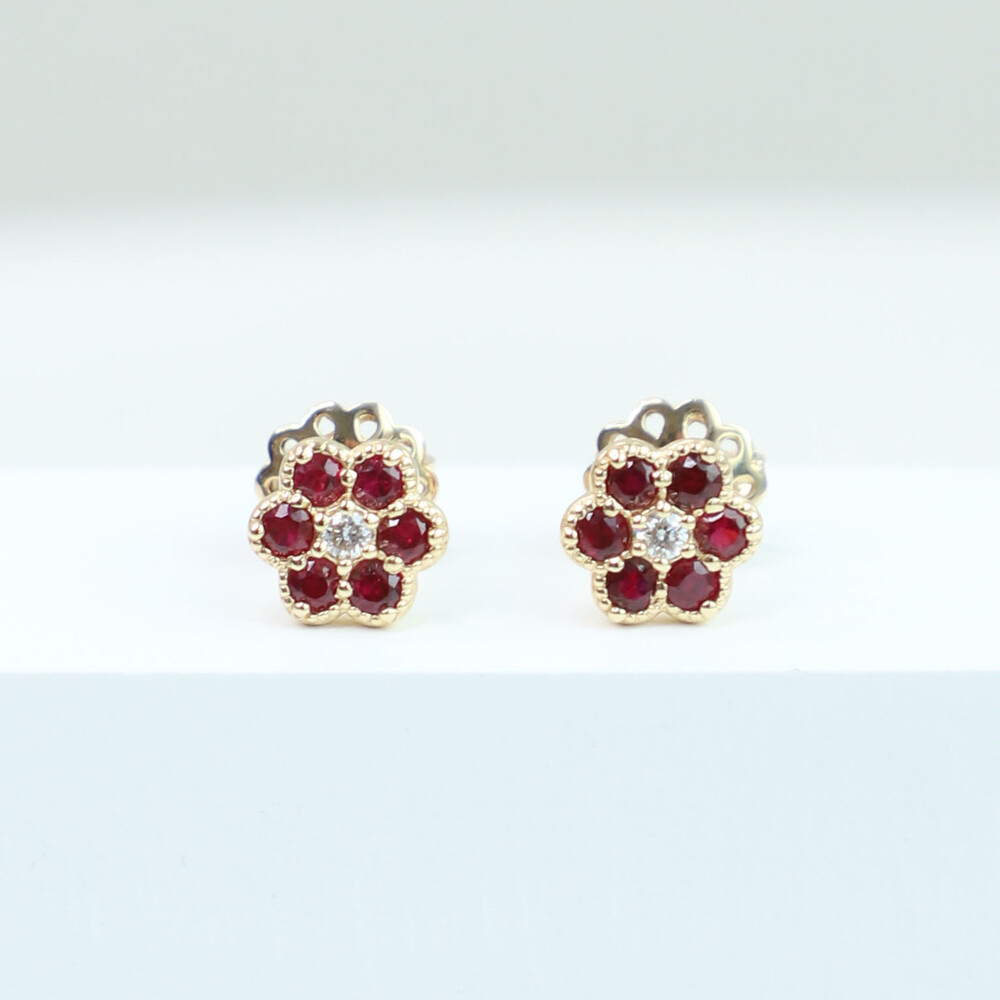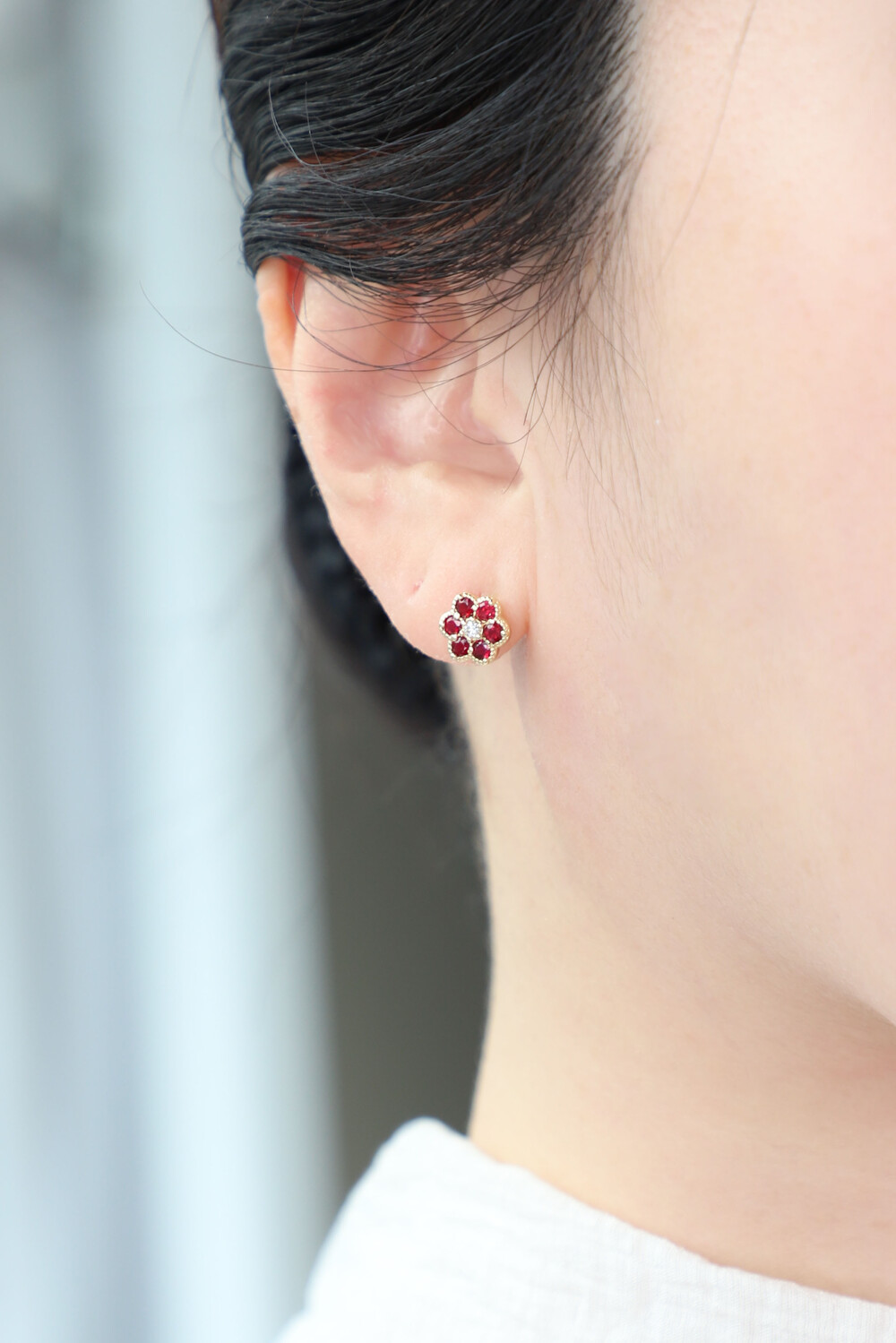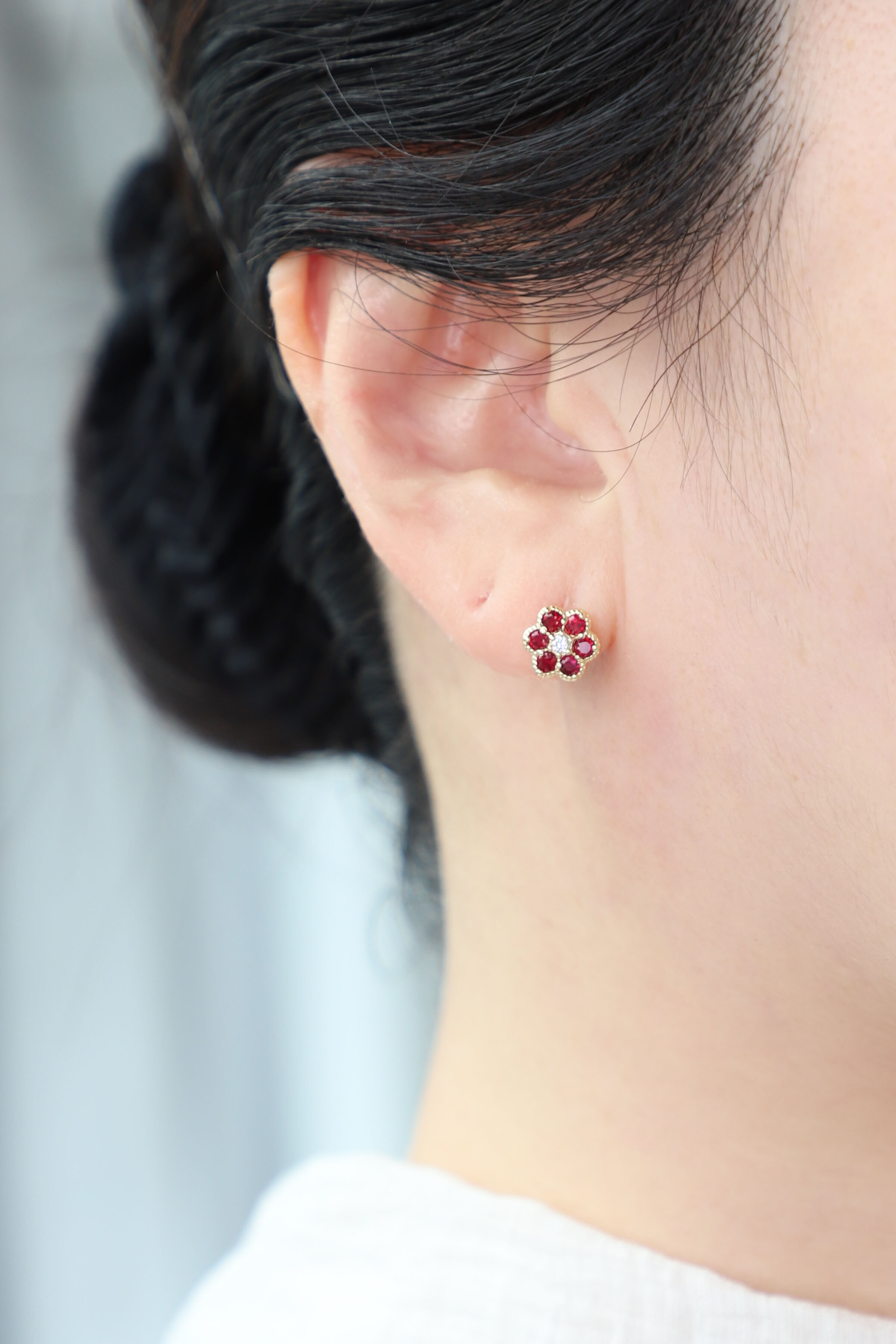[천연 보석] 블루밍 루비 다이아몬드 이어링