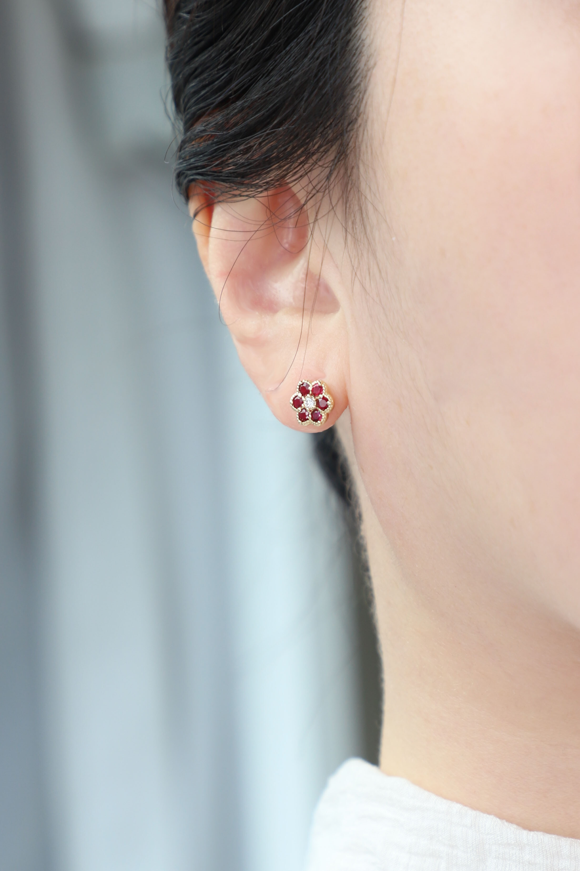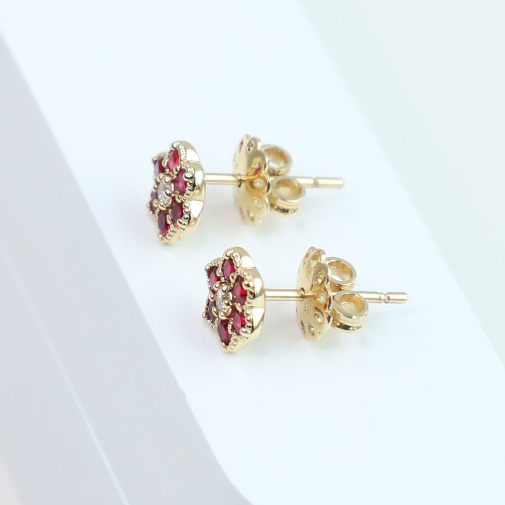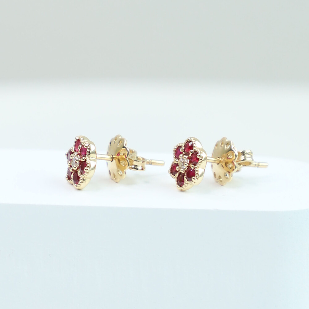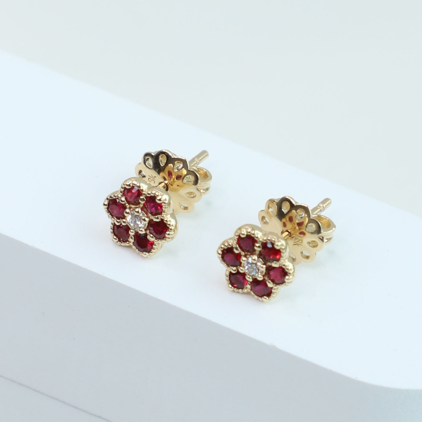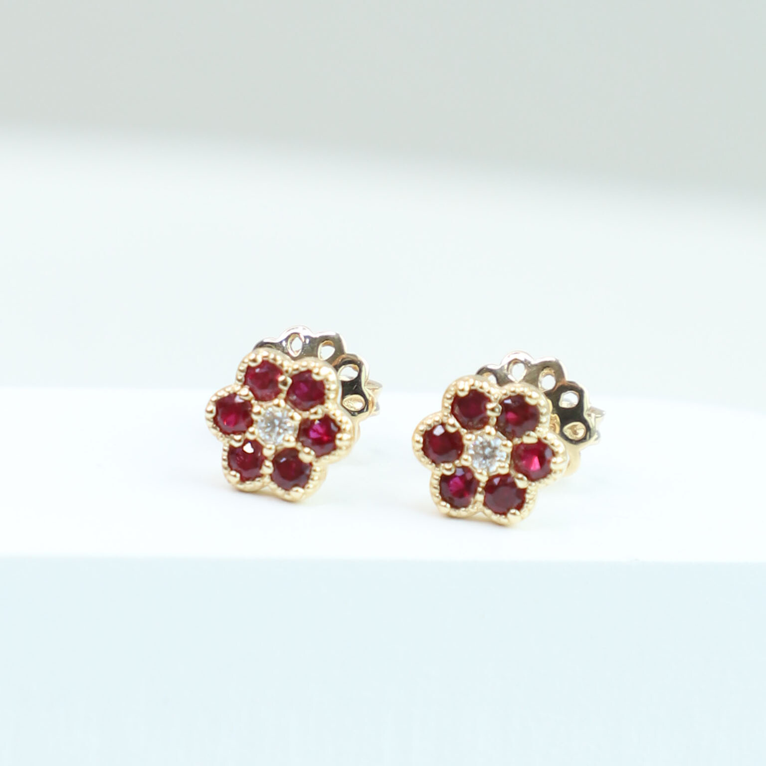 [천연 보석] 블루밍 루비 다이아몬드 이어링