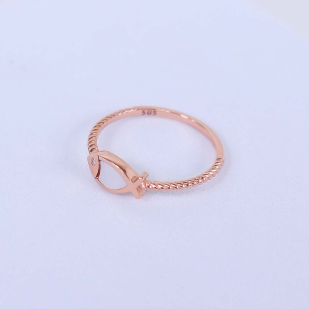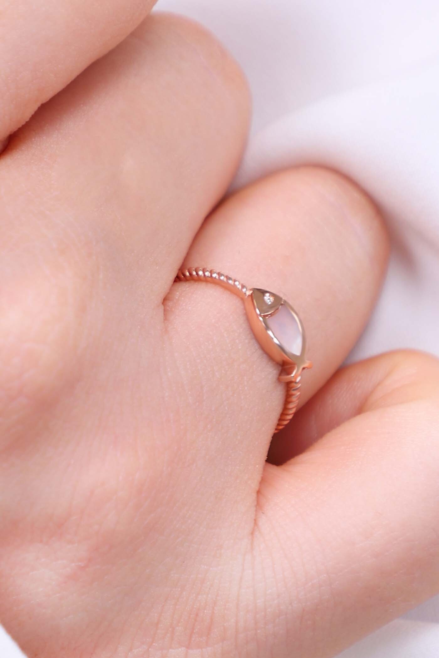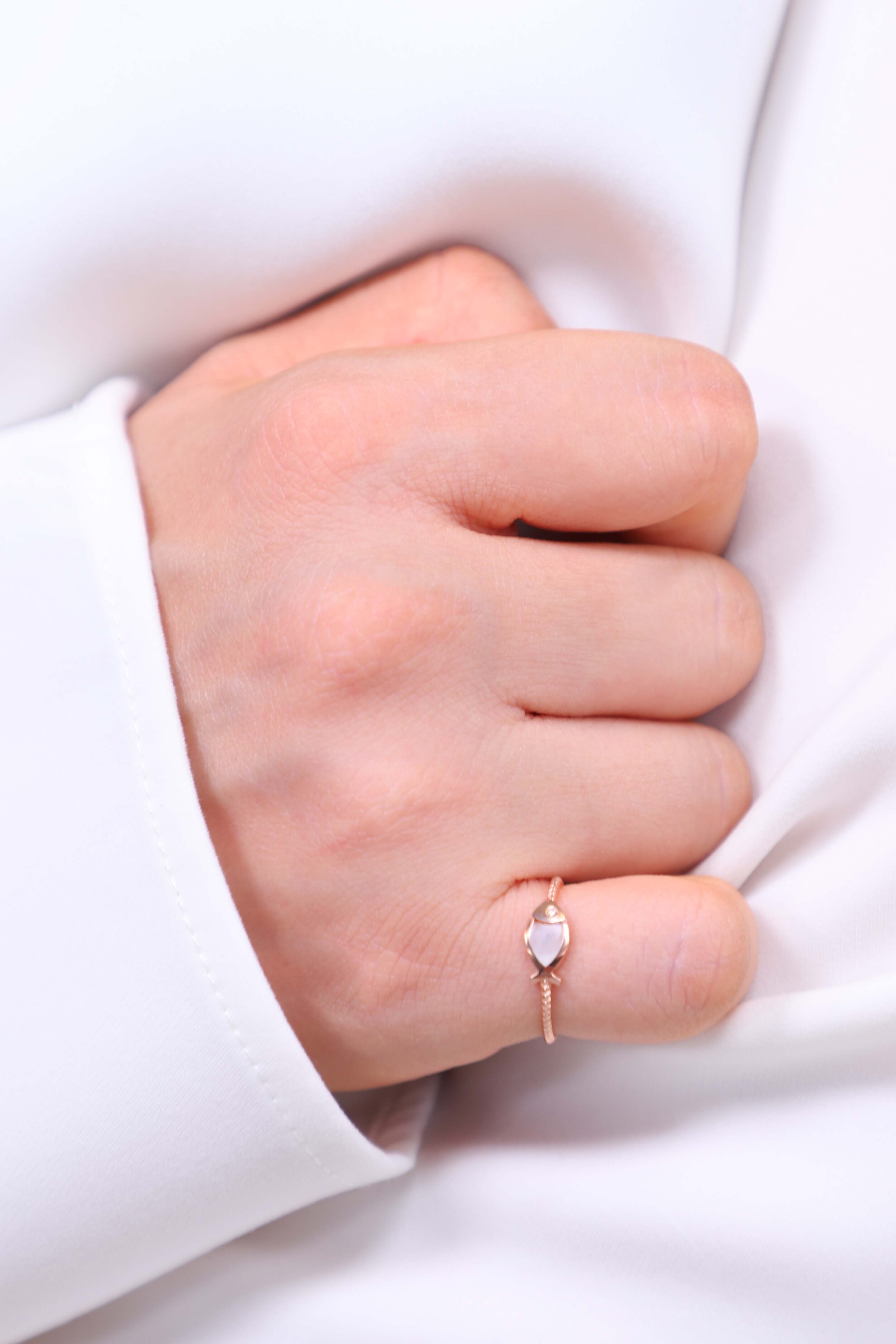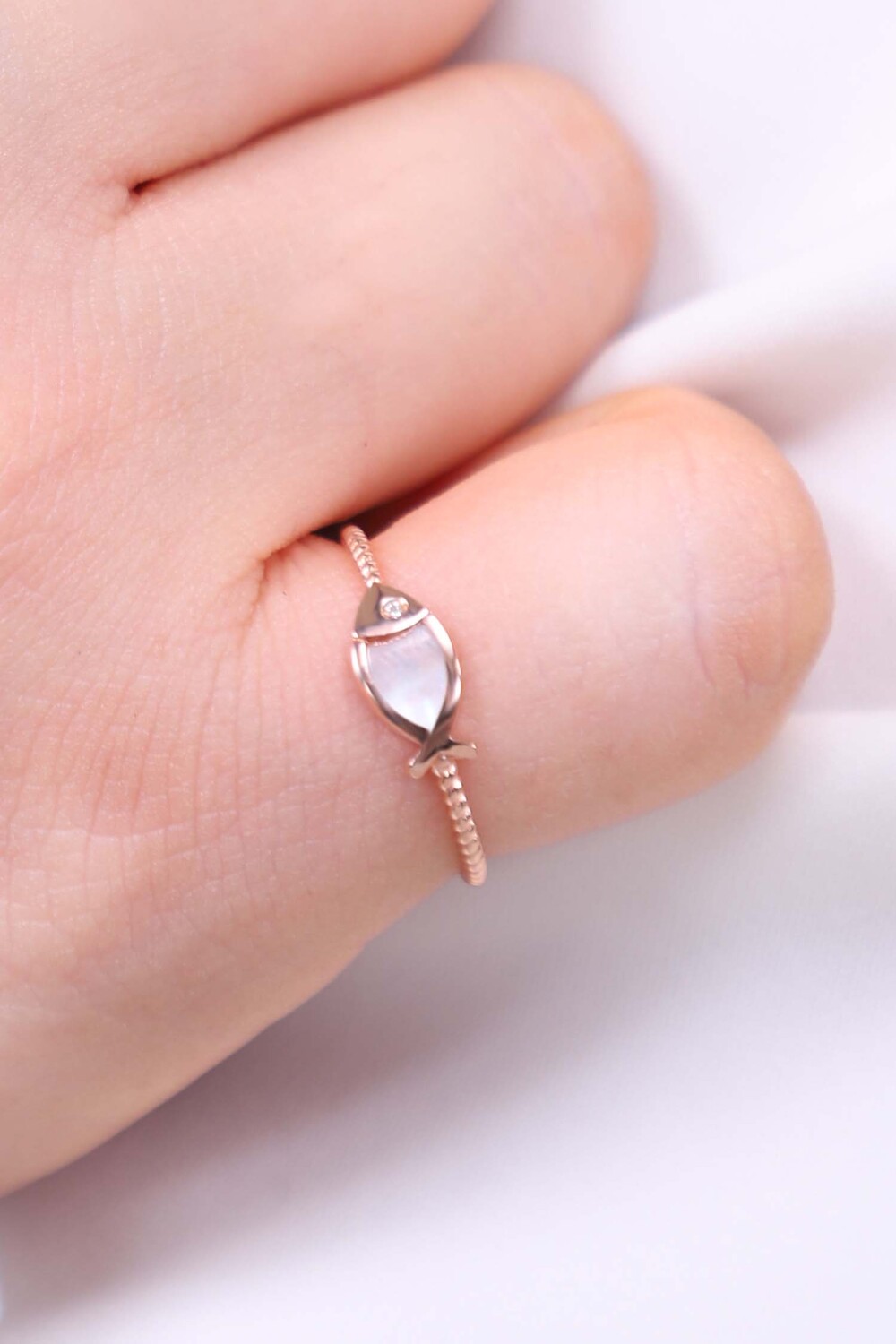 [천연 보석] 자개와 다이아몬드 물고기 링