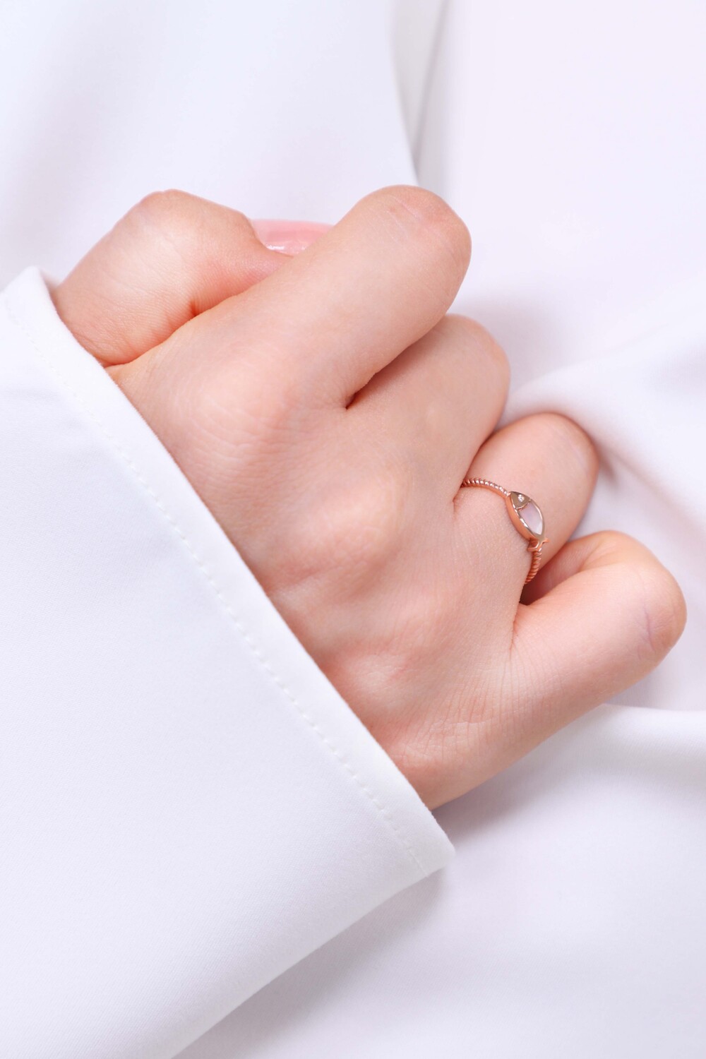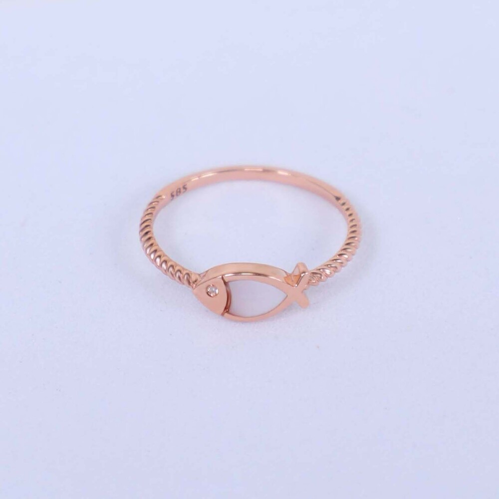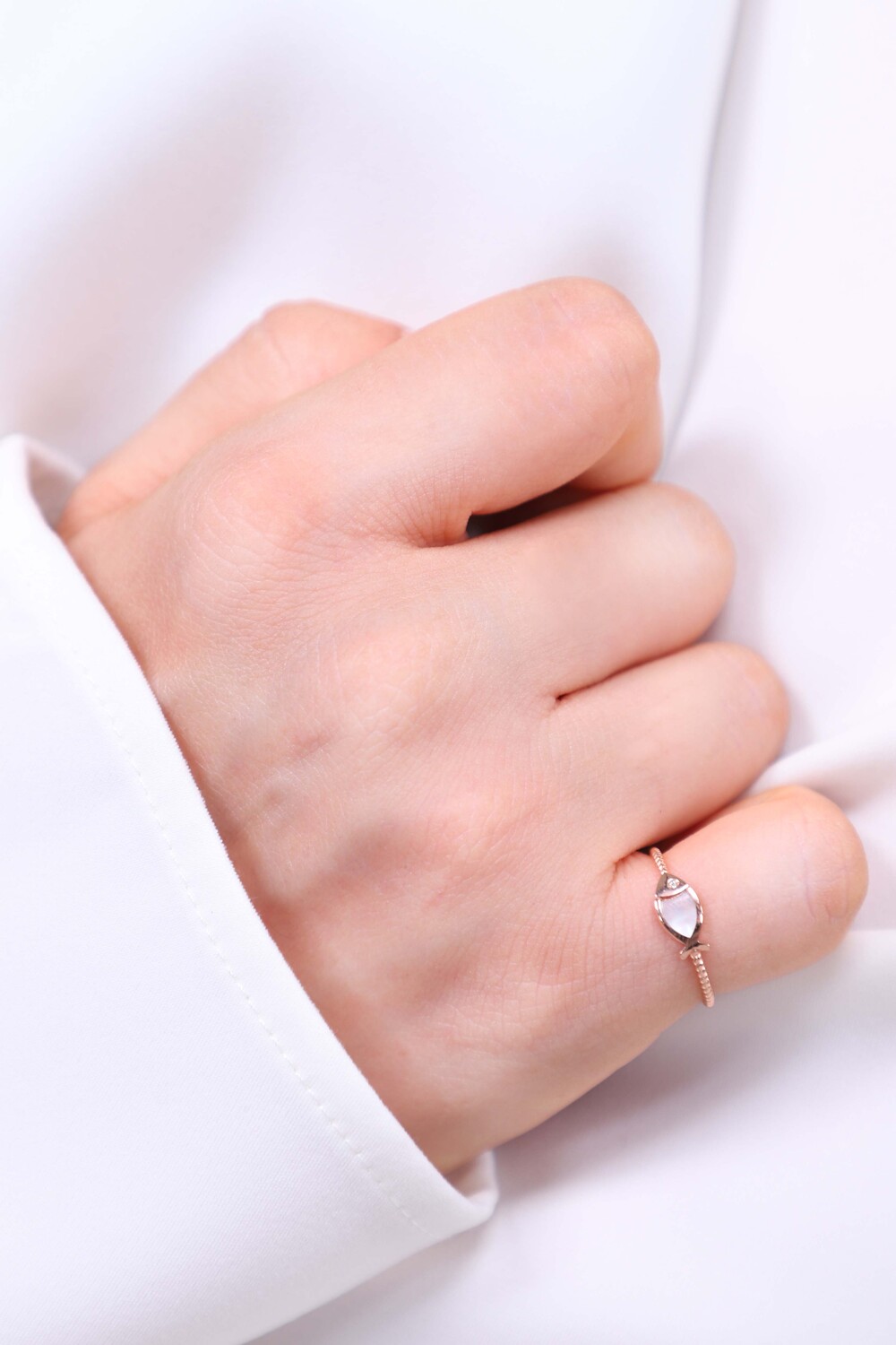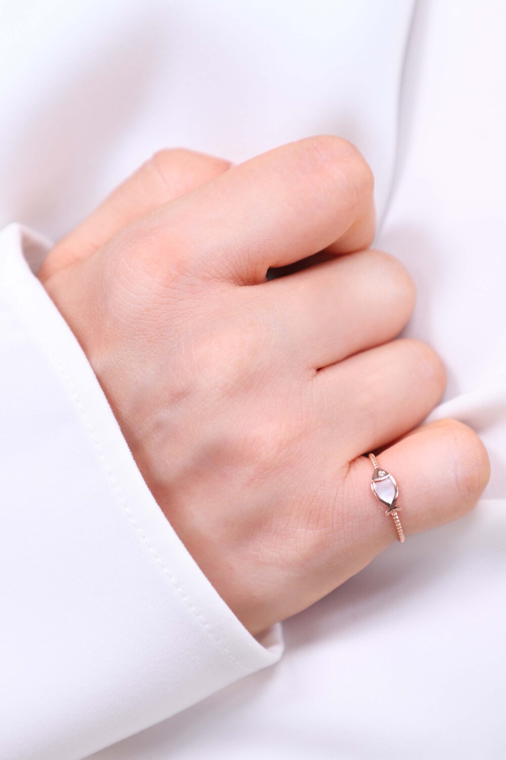 [천연 보석] 자개와 다이아몬드 물고기 링