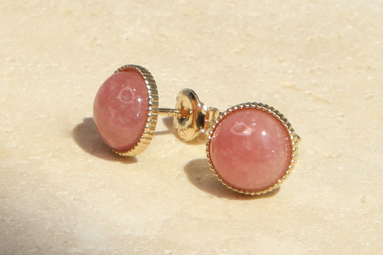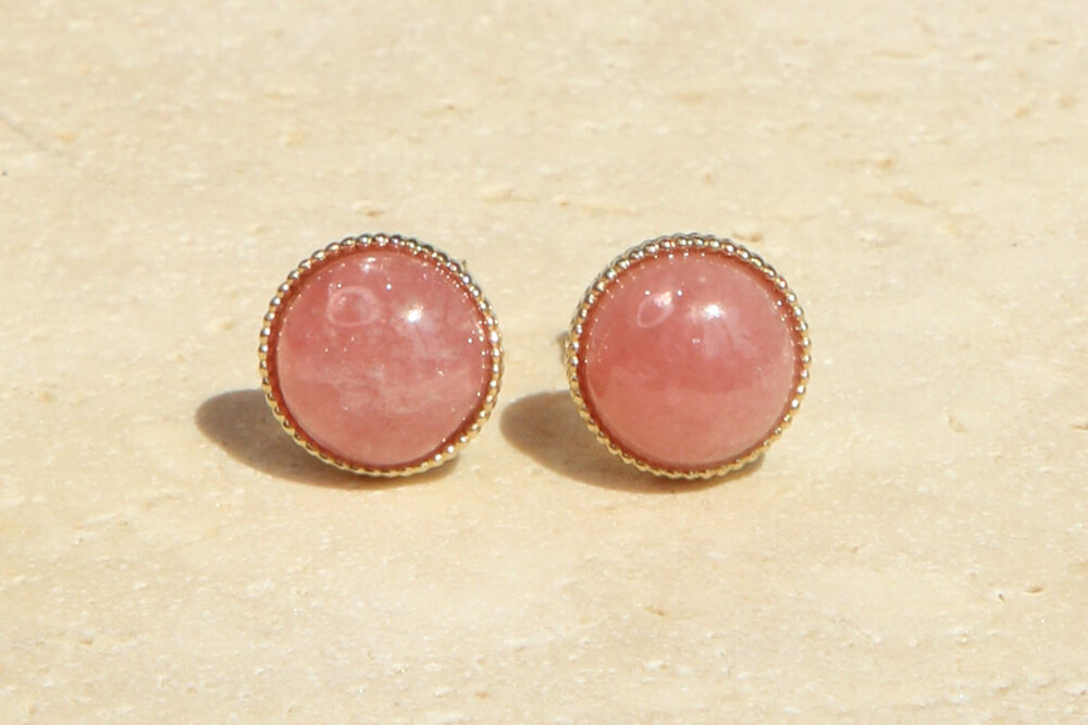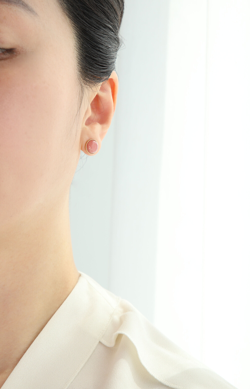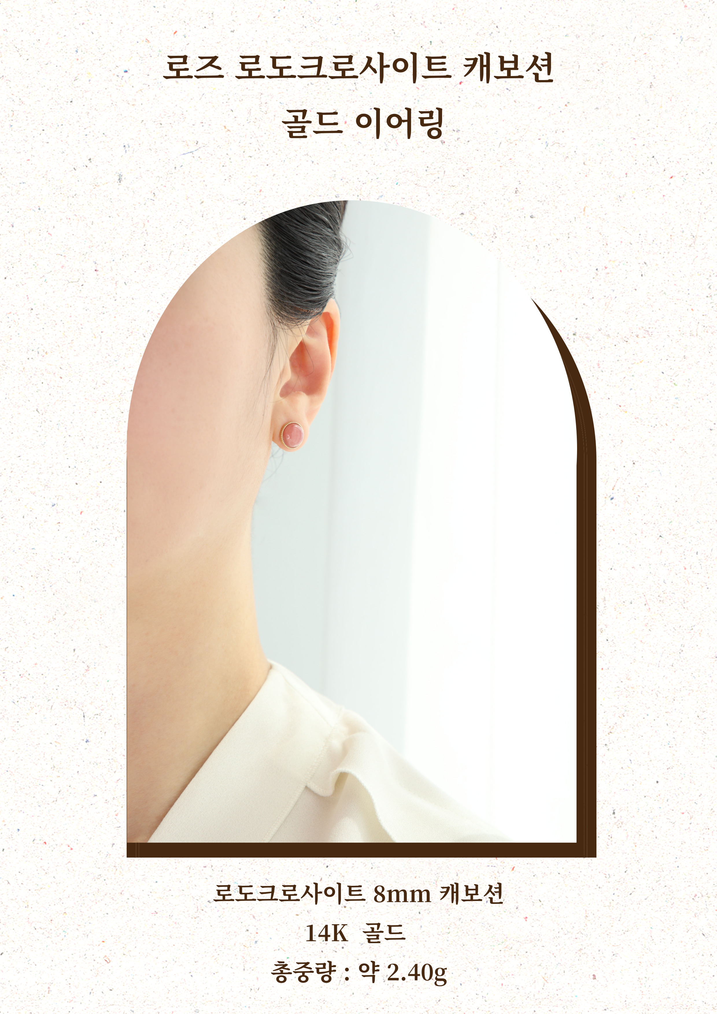 [천연 보석] 로즈 로도크로사이트 캐보션 이어링