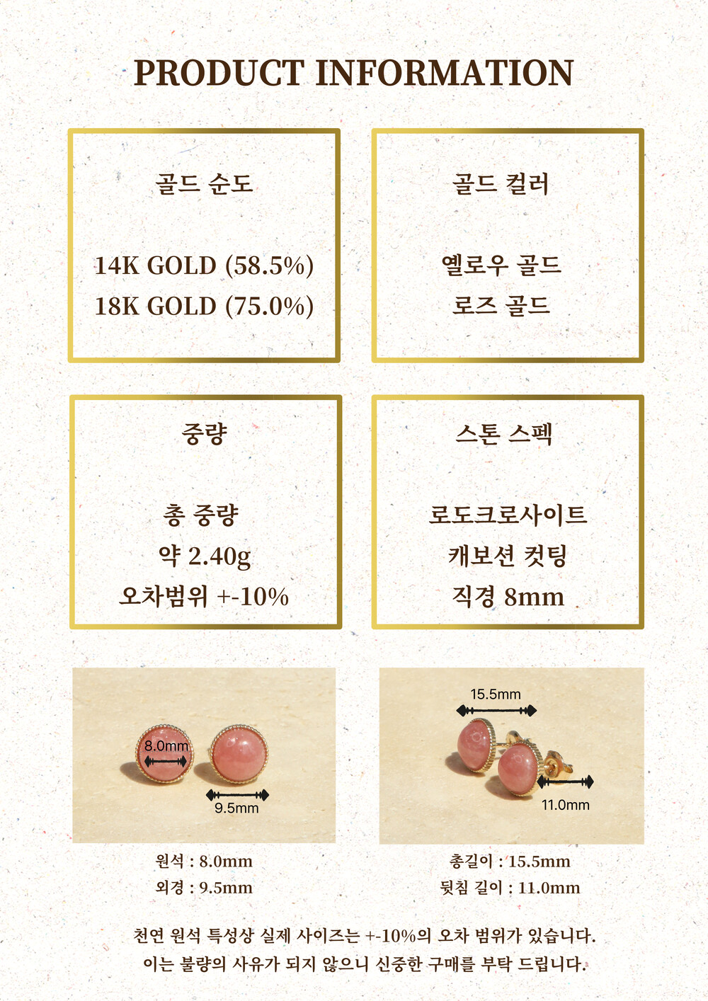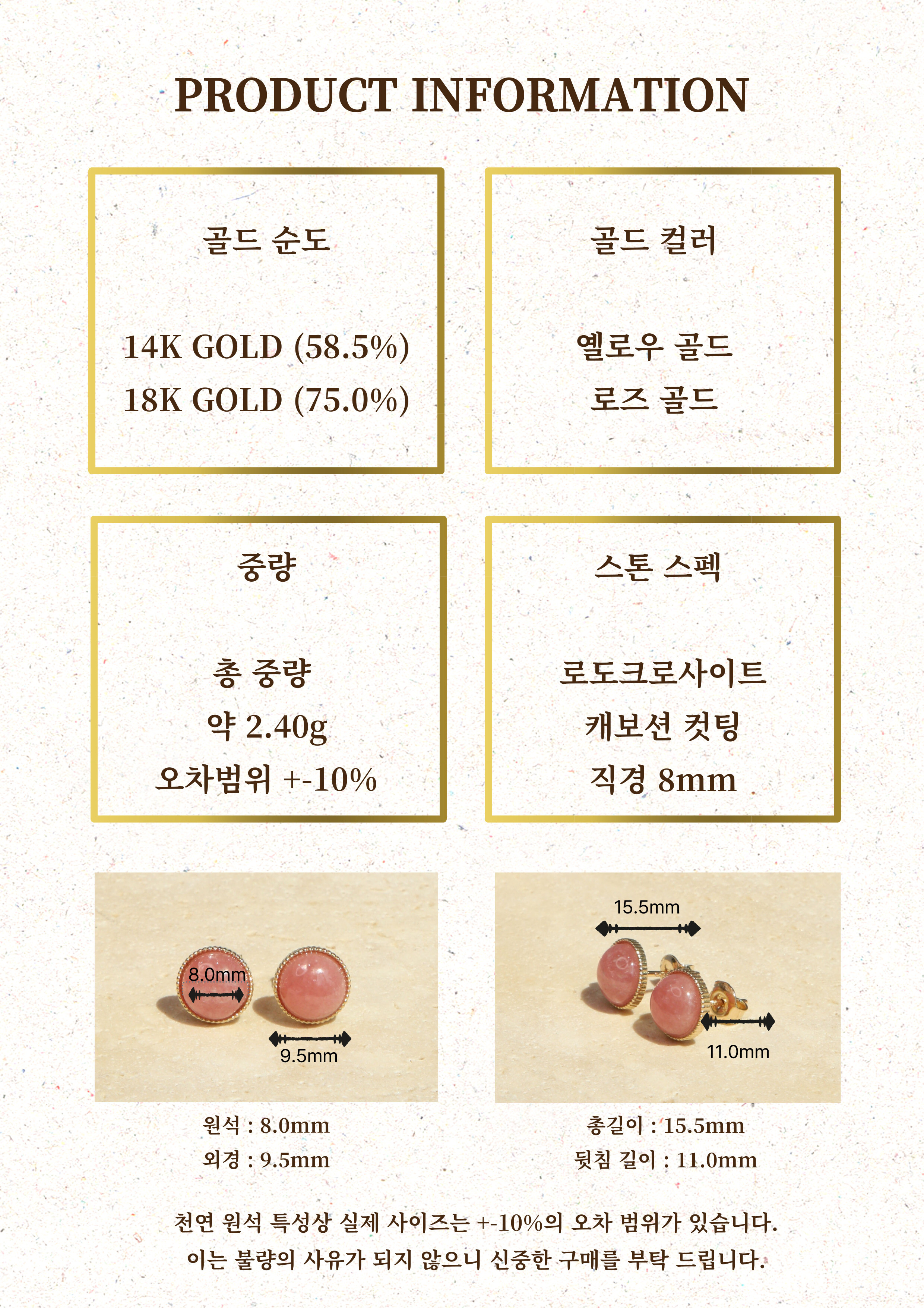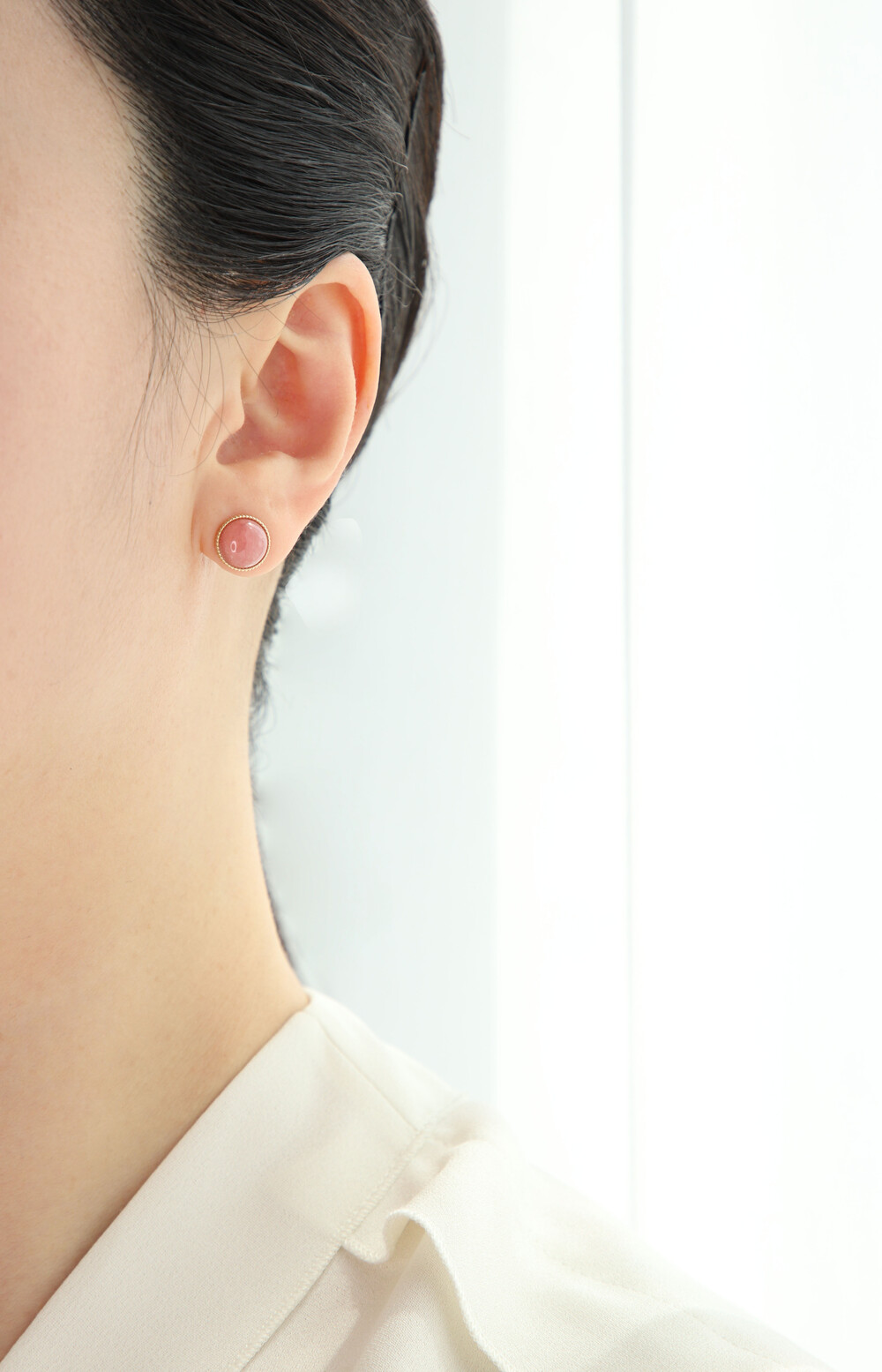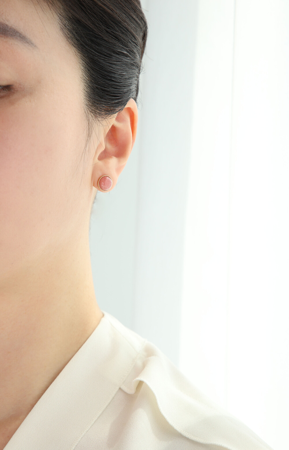 [천연 보석] 로즈 로도크로사이트 캐보션 이어링