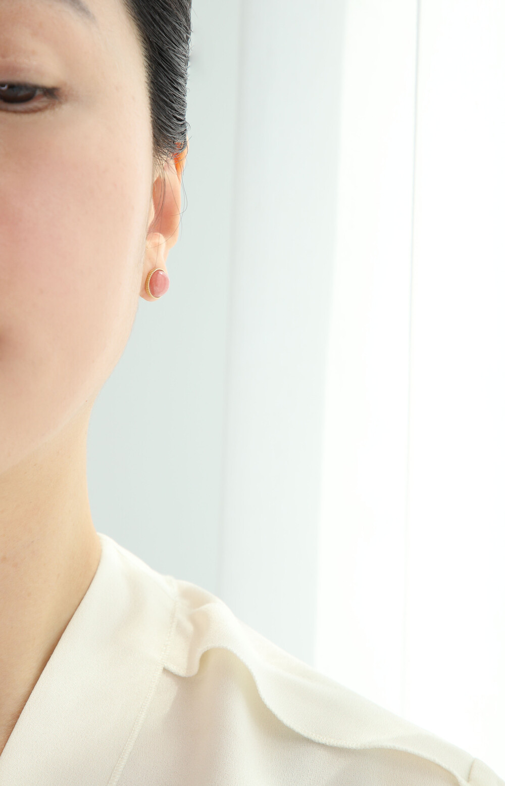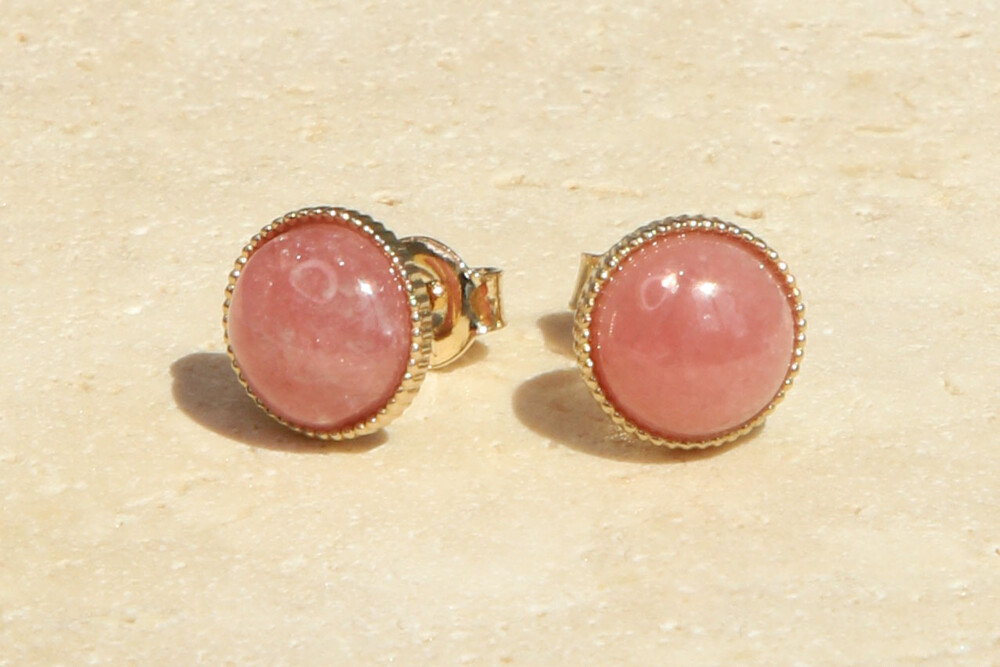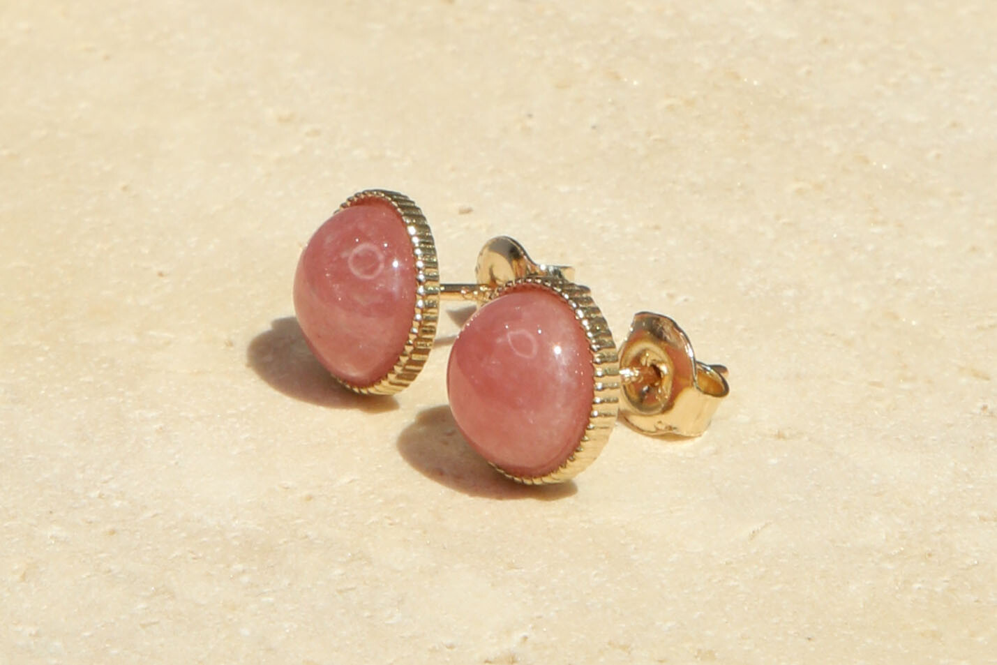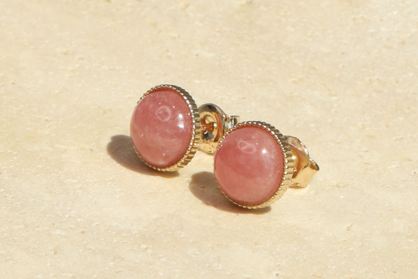 [천연 보석] 로즈 로도크로사이트 캐보션 이어링