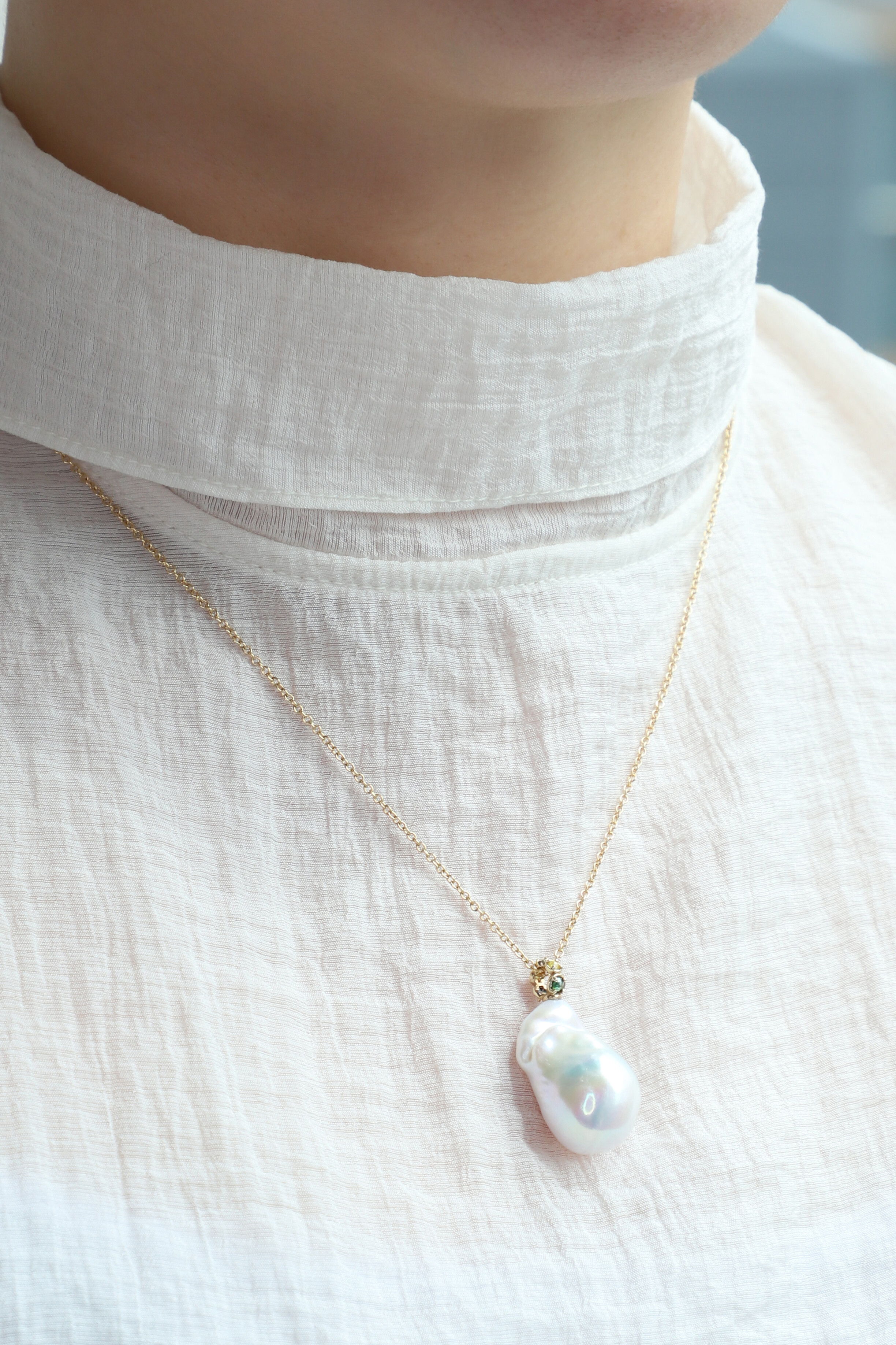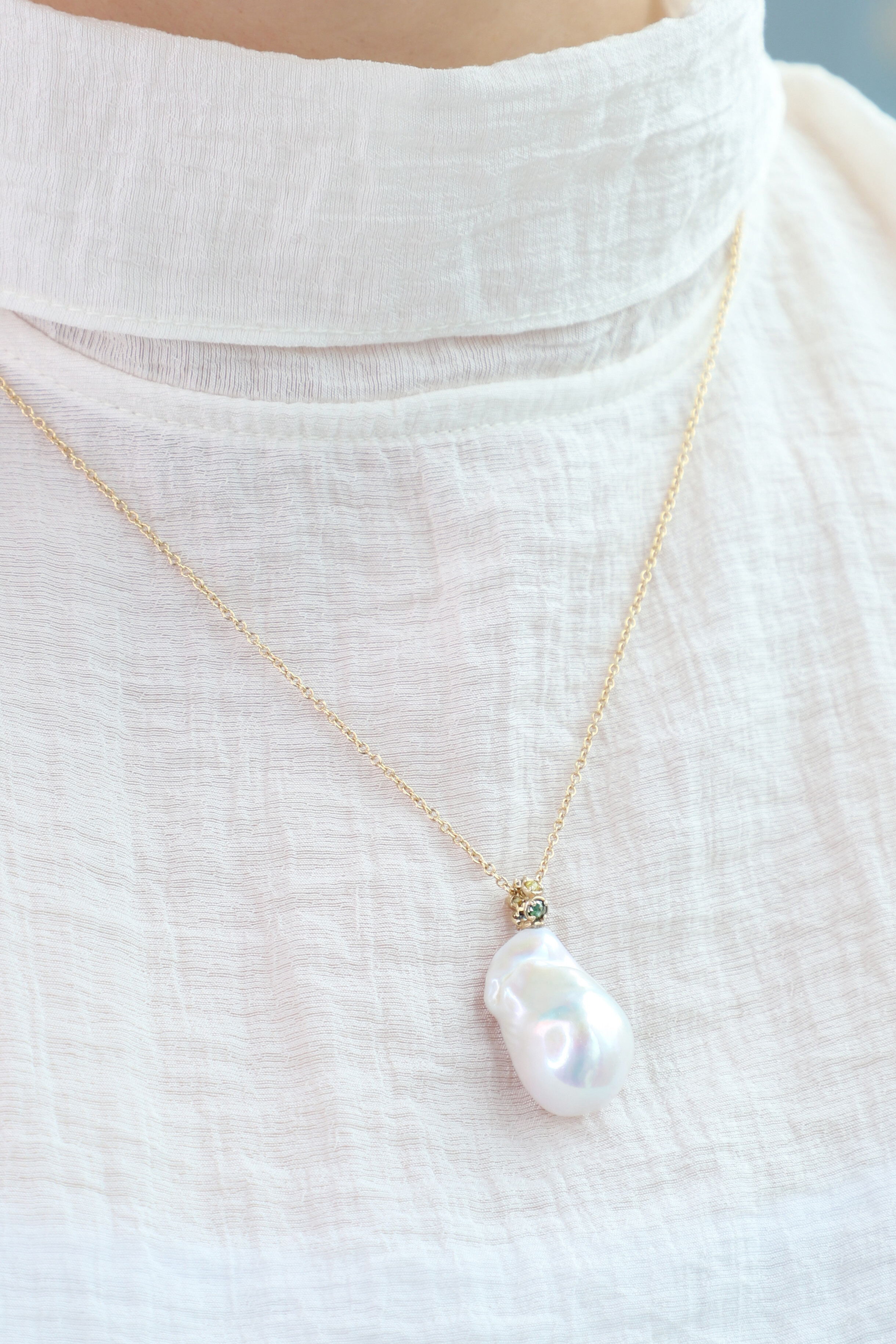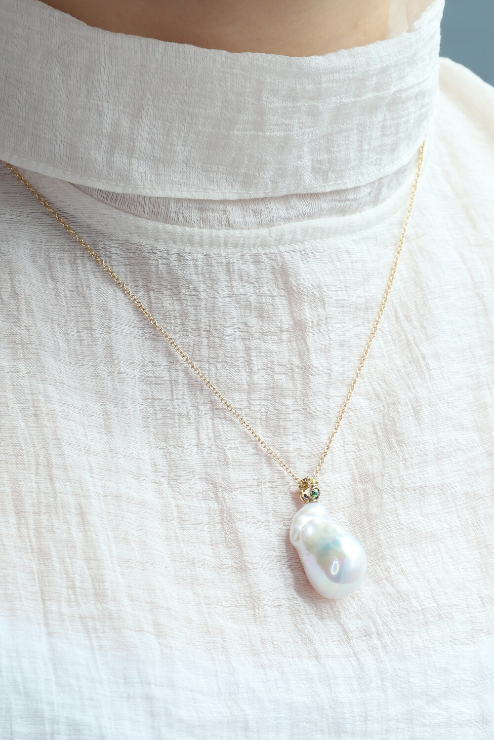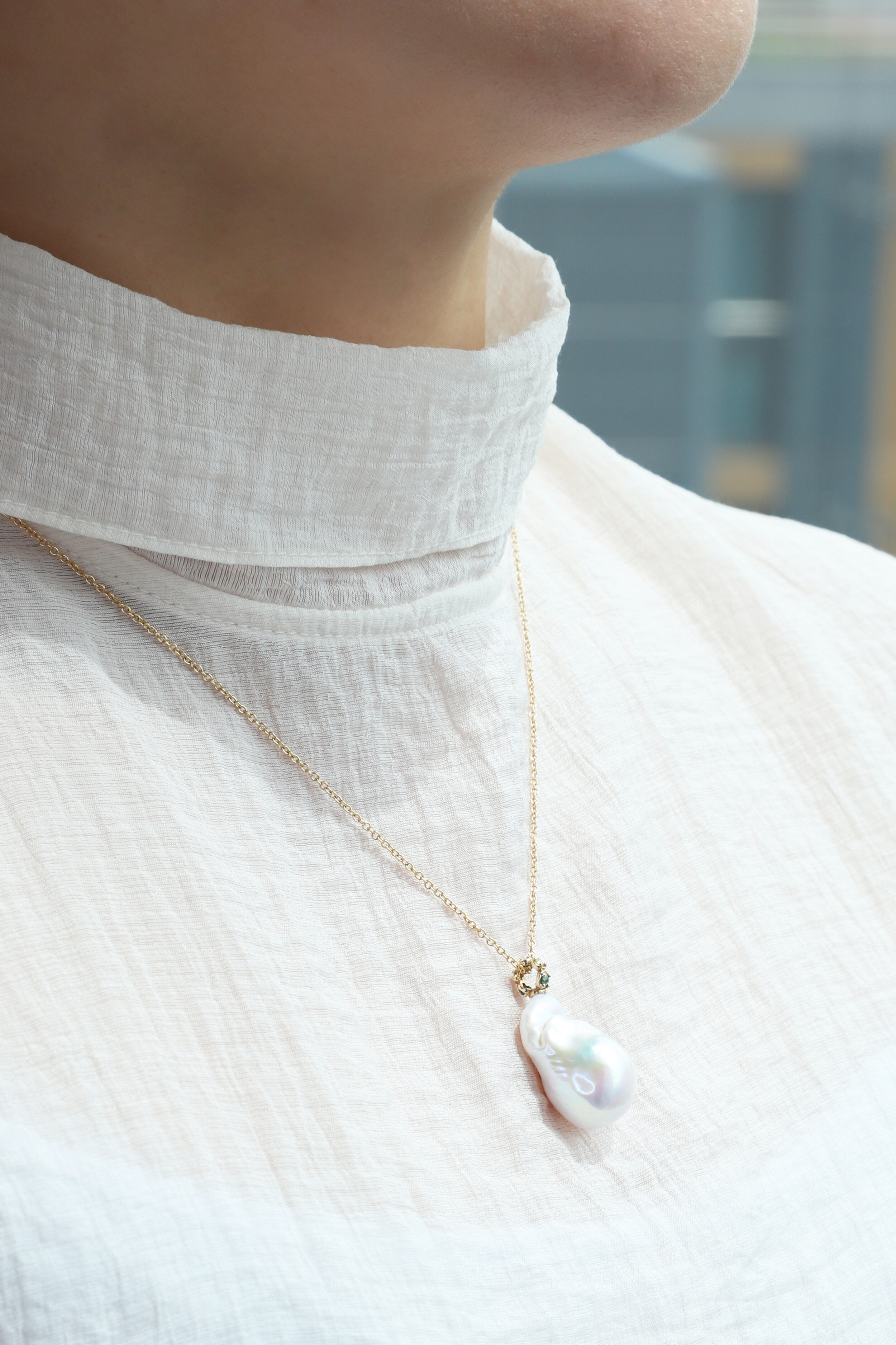 [천연 보석] 바로크 진주와 러프 다이아몬드 네크리스