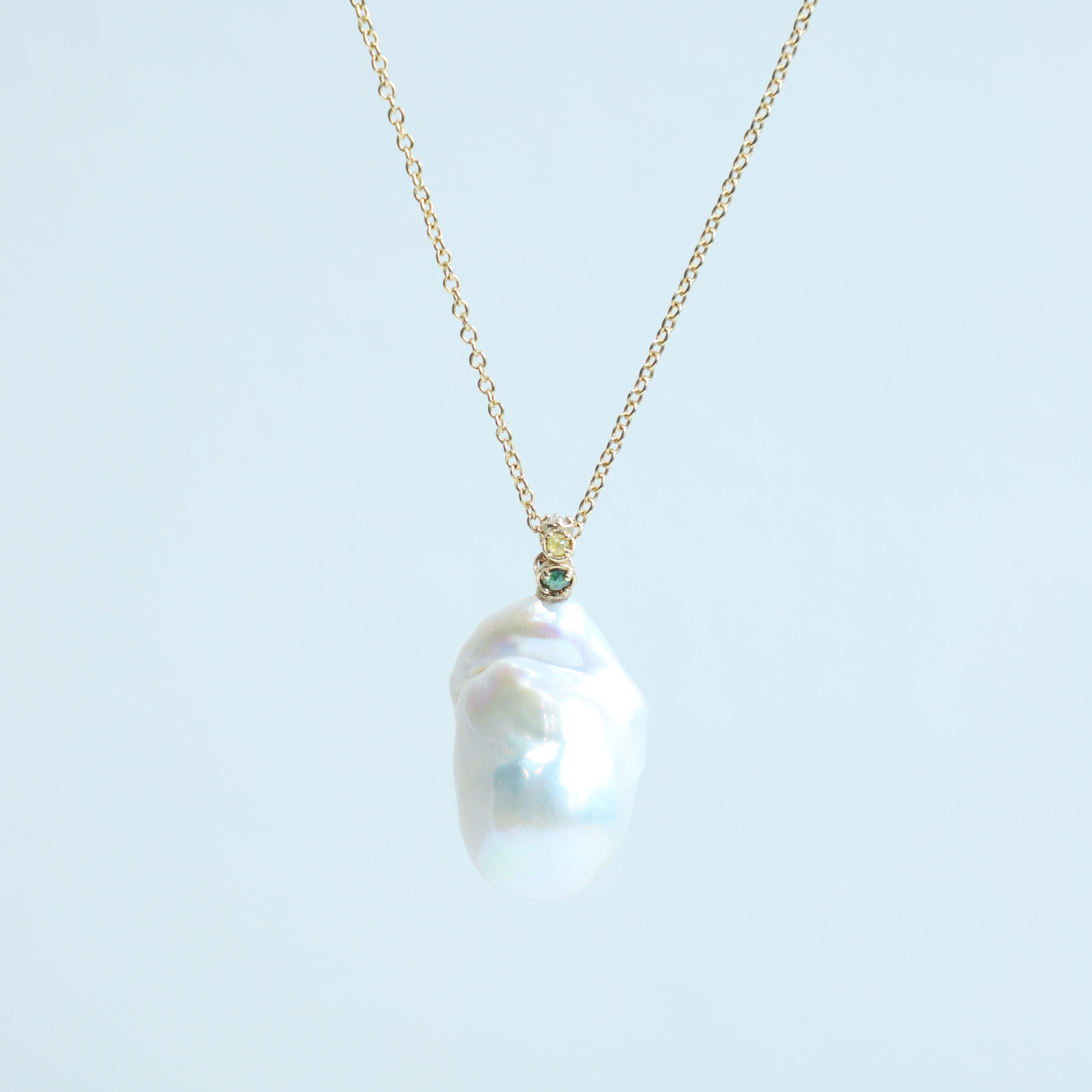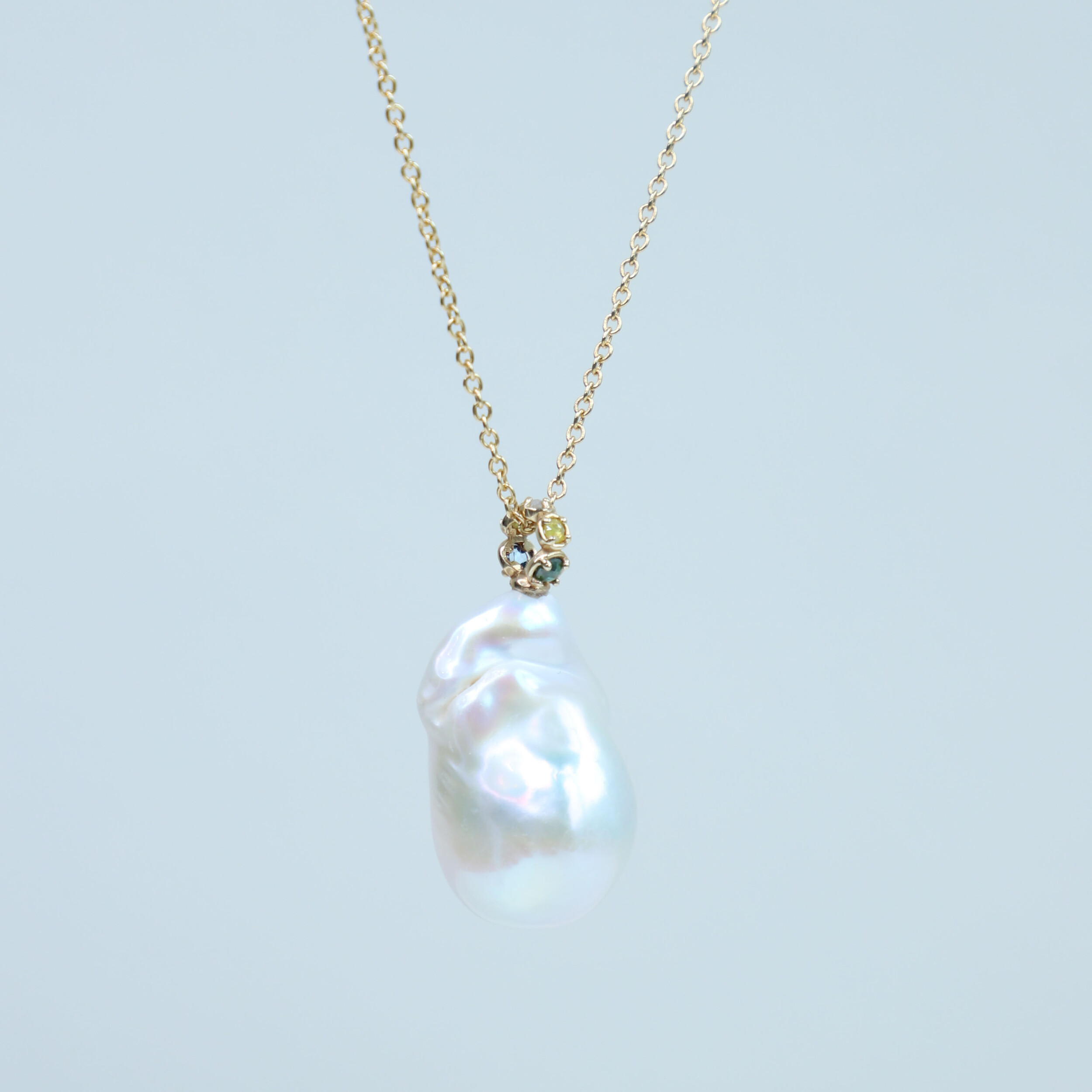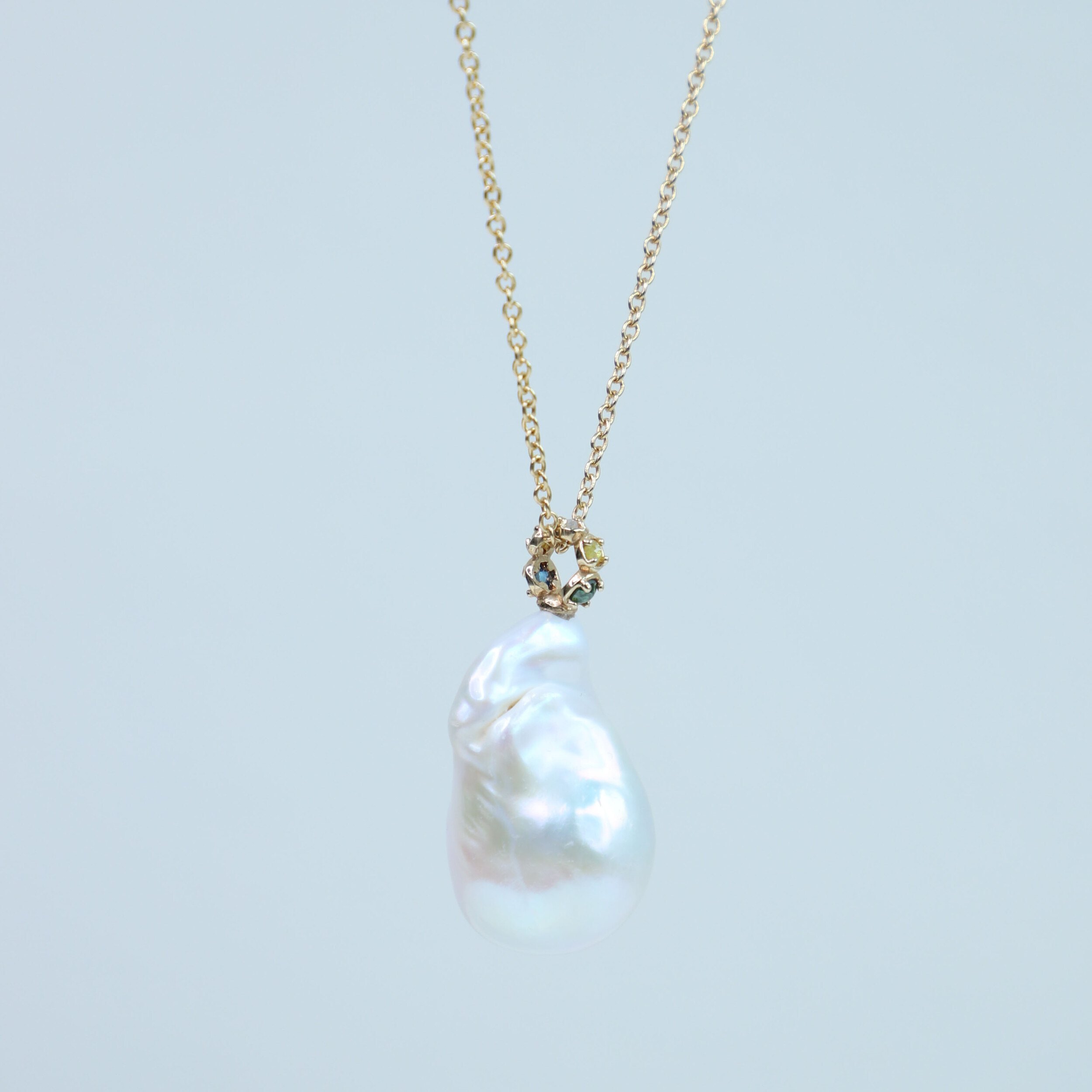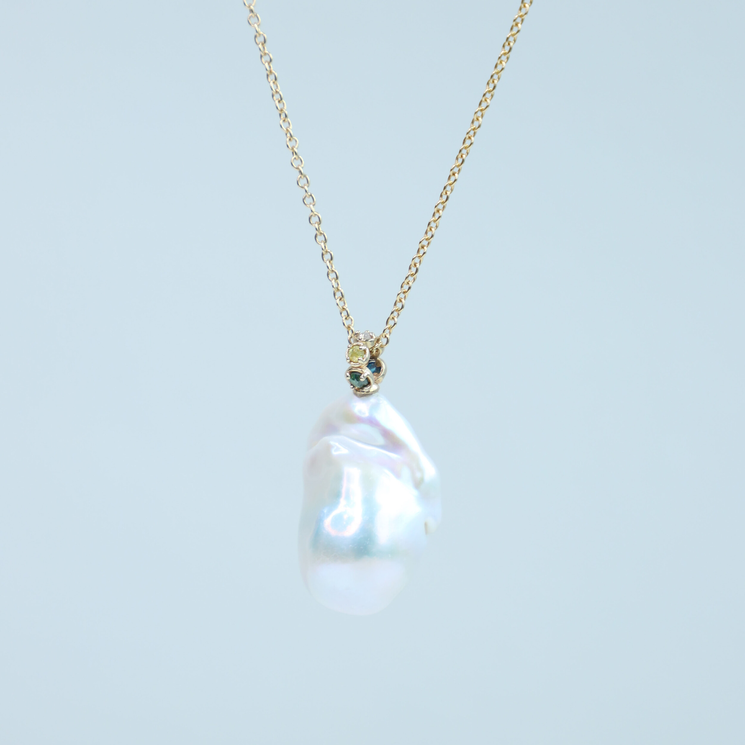 [천연 보석] 바로크 진주와 러프 다이아몬드 네크리스